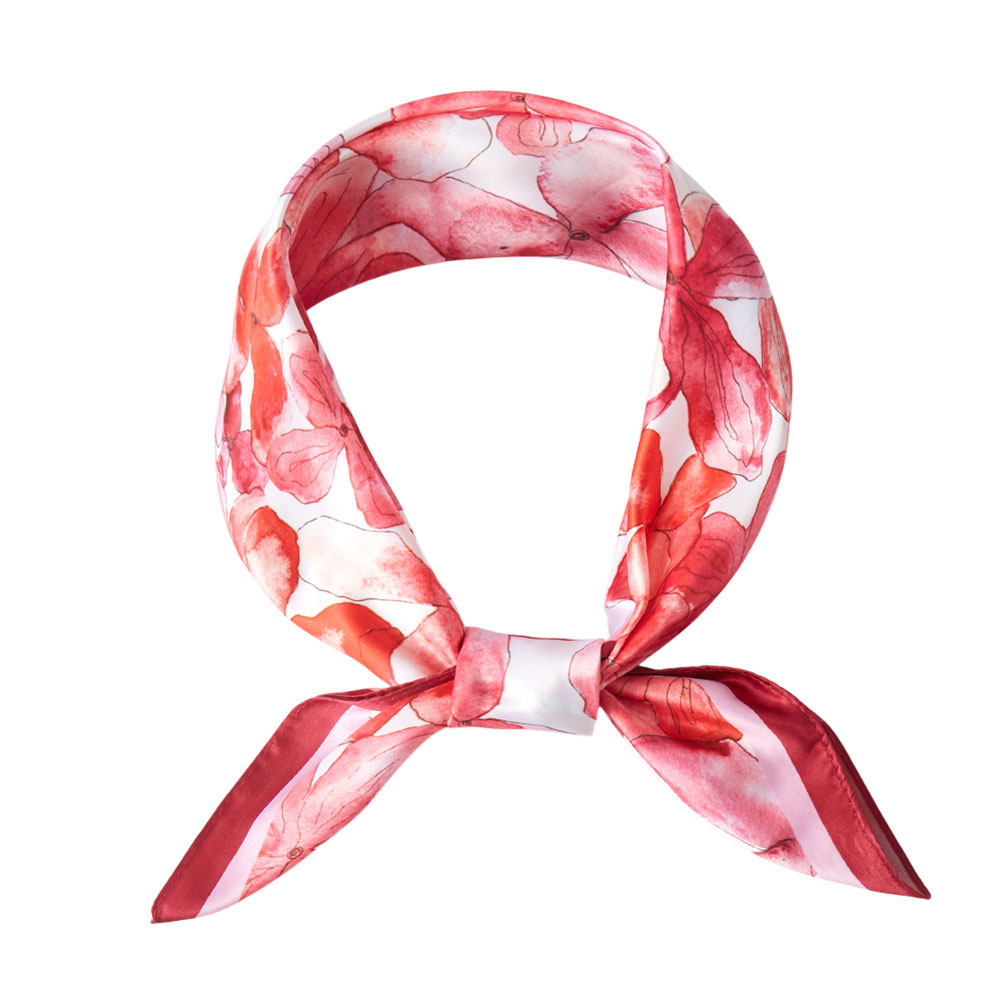 • This square scarf features a soft, watercolor-style floral print that adds a fresh, artistic touch to any outfit. Its lightweight design makes it perfect for elevating everyday looks, offering versatile styling options as a neck scarf, hair accessory, hat decor, or handbag accent.