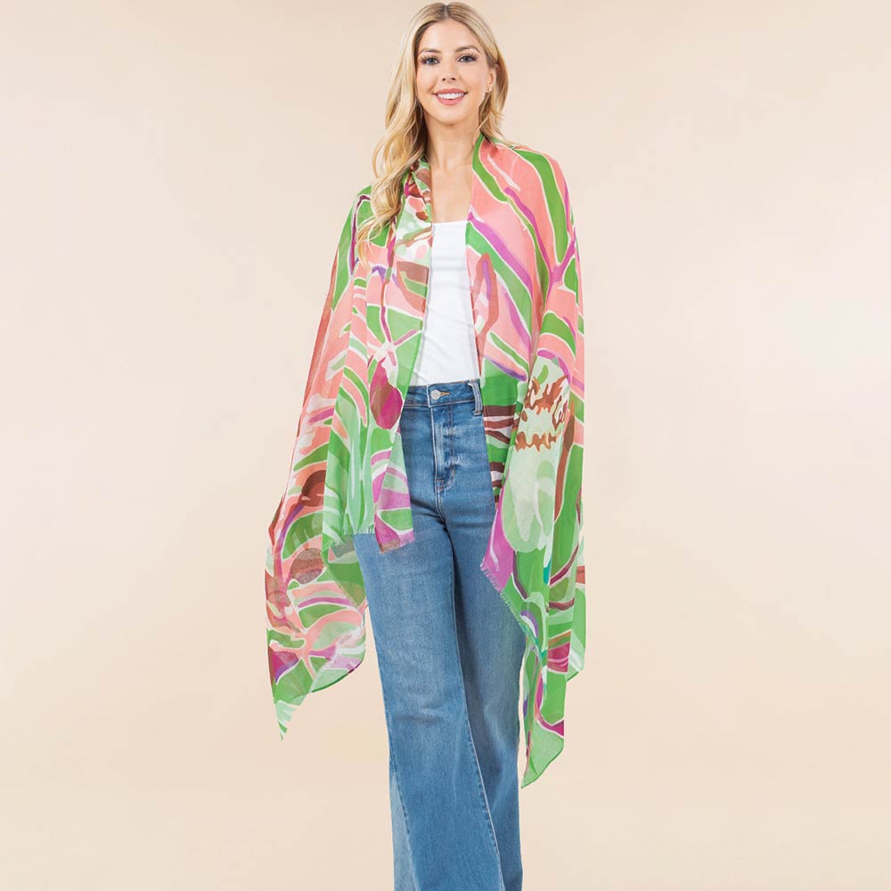 Abstract Floral Pattern Print Lightweight Wrap Scarf