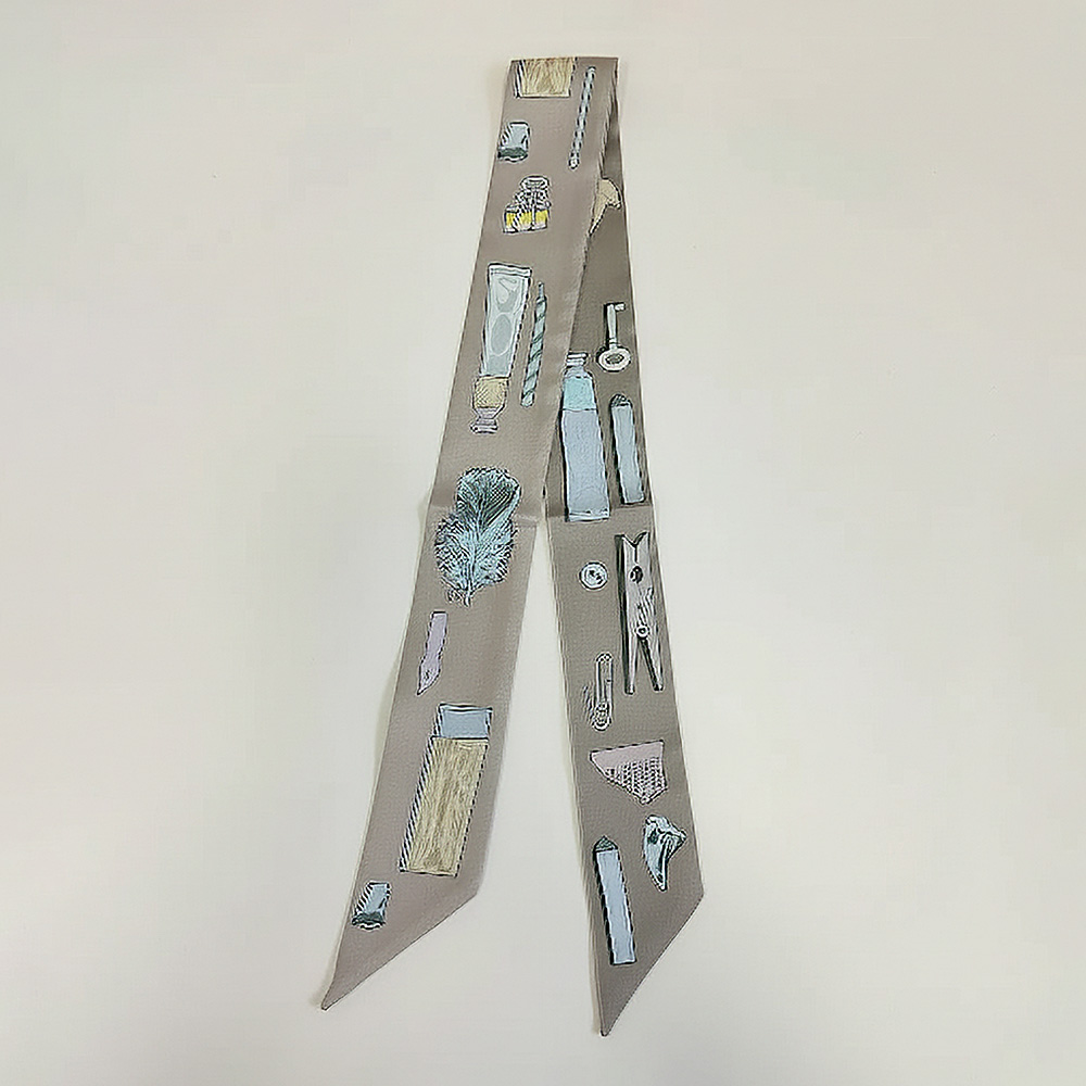 • Unleash your artistic side with this skinny silk scarf featuring a unique art-inspired print. Perfect for styling as a neck scarf, hair accessory, or bag charm, this versatile piece blends creativity with elegance for a chic modern look.