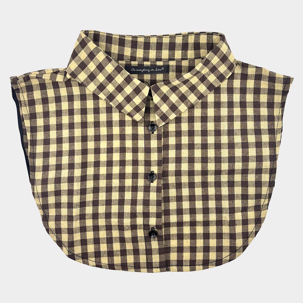 • Detachable shirt collar featuring a timeless gingham pattern with a button-front design. Perfect for layering under sweaters, cardigans, dresses, or blazers, it adds a clean, tailored look without bulk. An easy styling accessory to refresh everyday outfits, office wear, or casual looks with minimal effort.