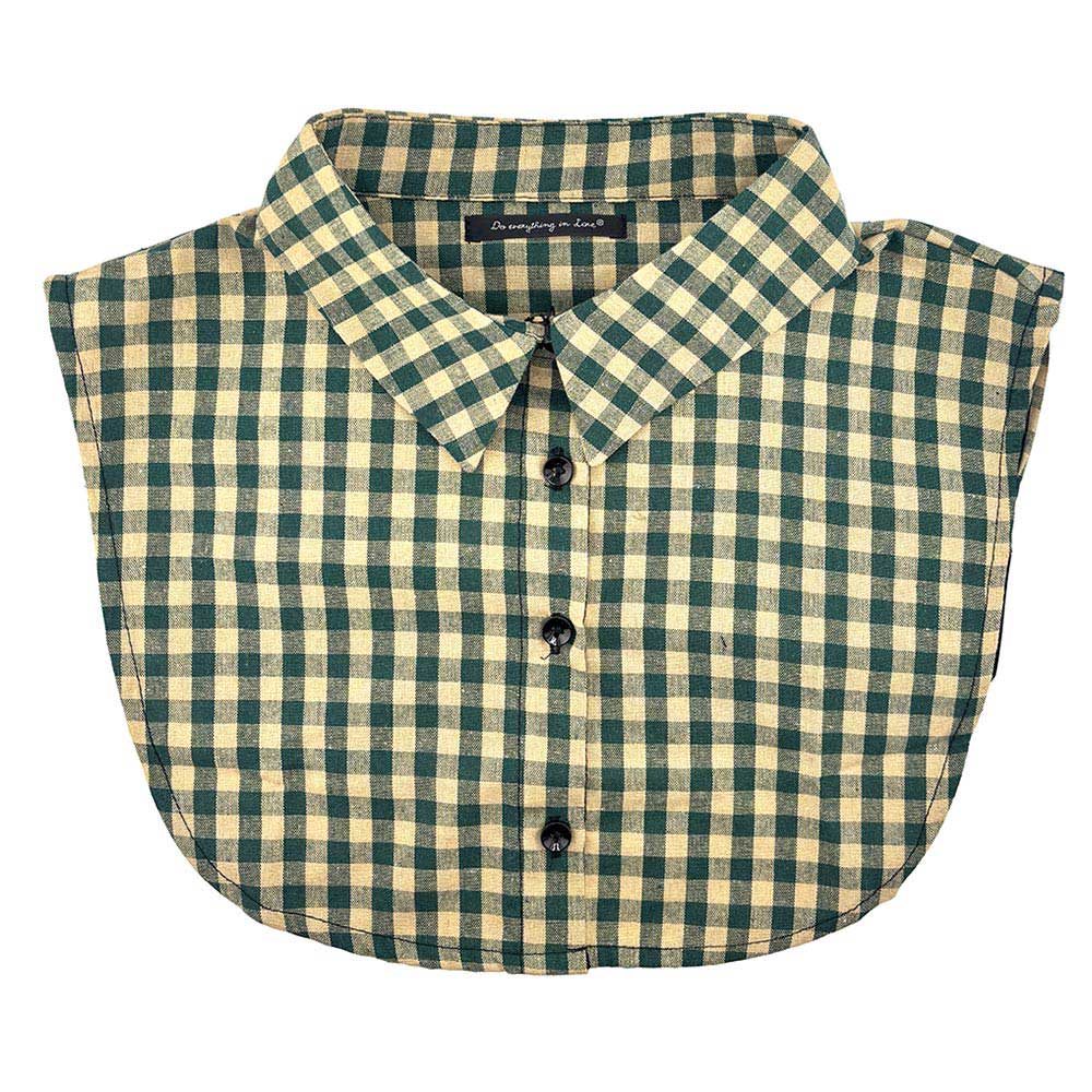 • Detachable shirt collar featuring a timeless gingham pattern with a button-front design. Perfect for layering under sweaters, cardigans, dresses, or blazers, it adds a clean, tailored look without bulk. An easy styling accessory to refresh everyday outfits, office wear, or casual looks with minimal effort.