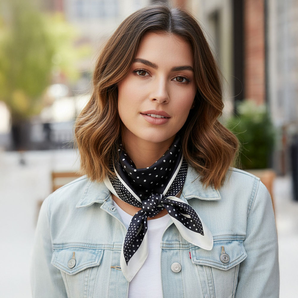 • Classic polka dot square scarf designed for effortless styling around the neck, hair, handbag, or wrist. A versatile fashion accessory that adds a timeless, retro-inspired accent to everyday outfits, seasonal wardrobes, and boutique collections with easy mix-and-match appeal.