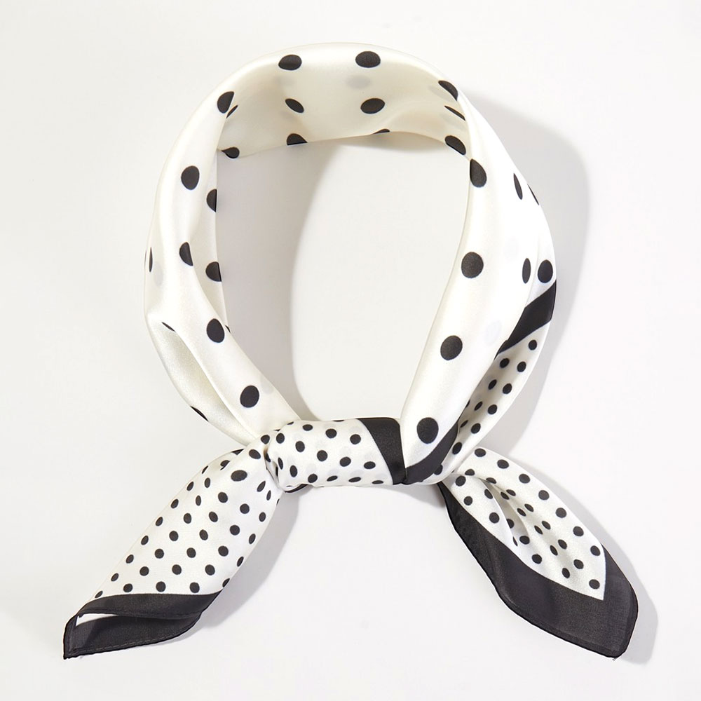 Details • Size : 27.5" X 27.5" • Material : 100% Polyester • Classic polka dot square scarf designed for effortless styling around the neck, hair, handbag, or wrist. A versatile fashion accessory that adds a timeless, retro-inspired accent to everyday outfits, seasonal wardrobes, and boutique collections with easy mix-and-match appeal.