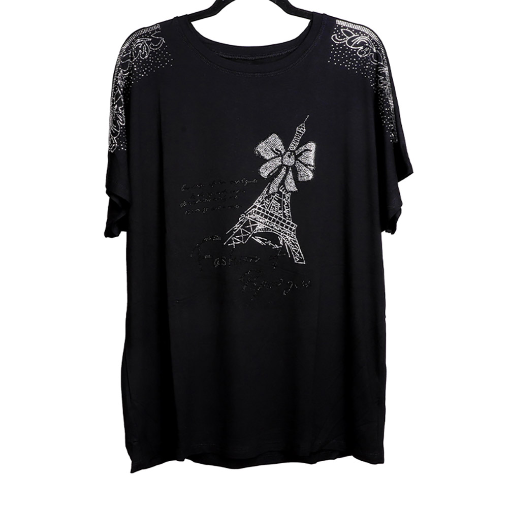 Bling Studded Eiffel Tower Printed Half Sleeve Top