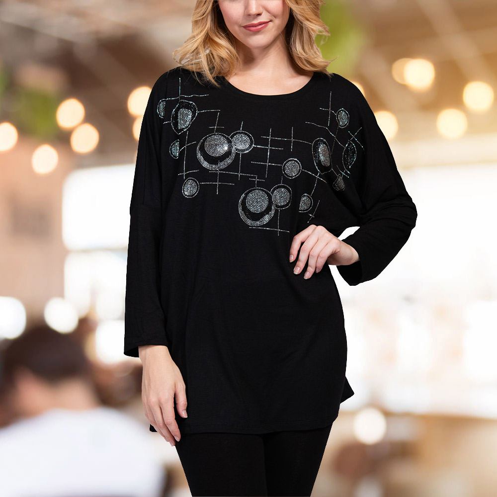 Bling Studded Abstract Pattern Printed Long Sleeve Top