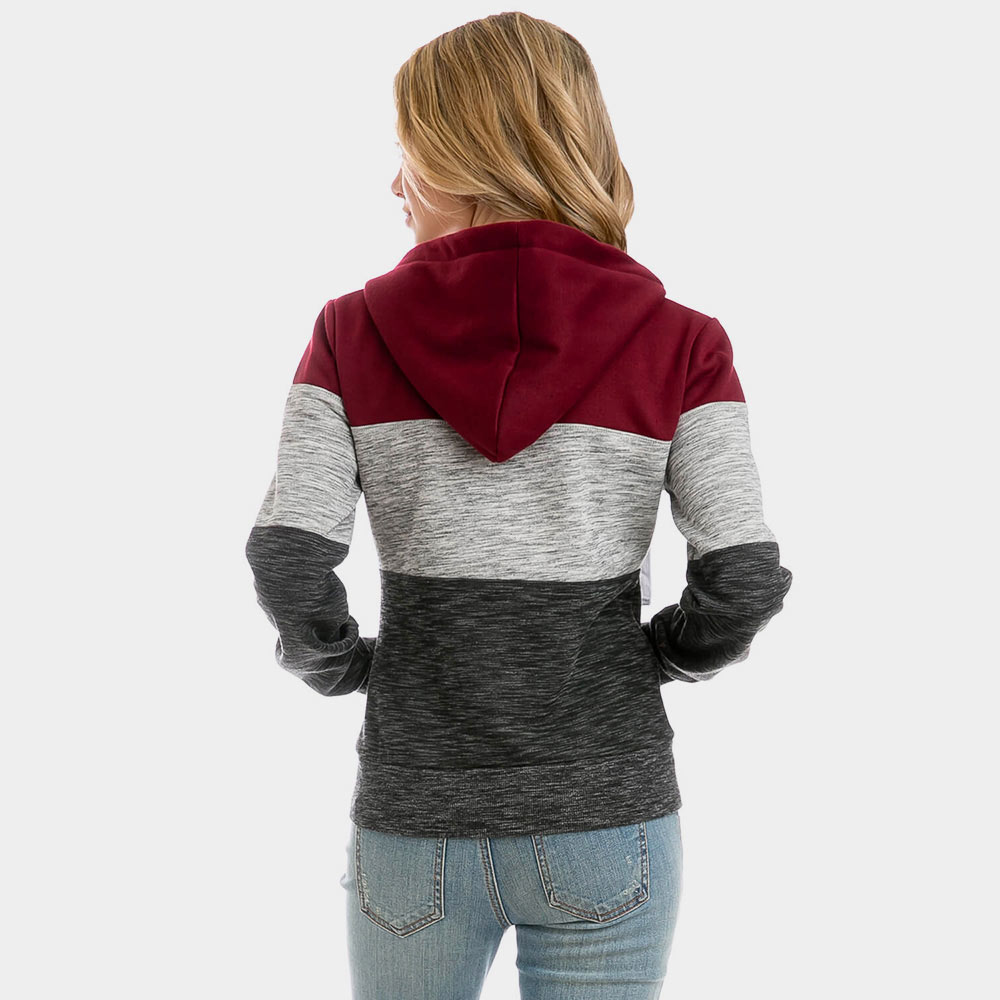 Color Block Zip Up Hoodies Sweater