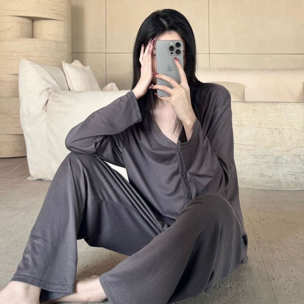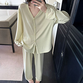 Solid Color Long Sleeves Top Pants Loungewear Pajama Set