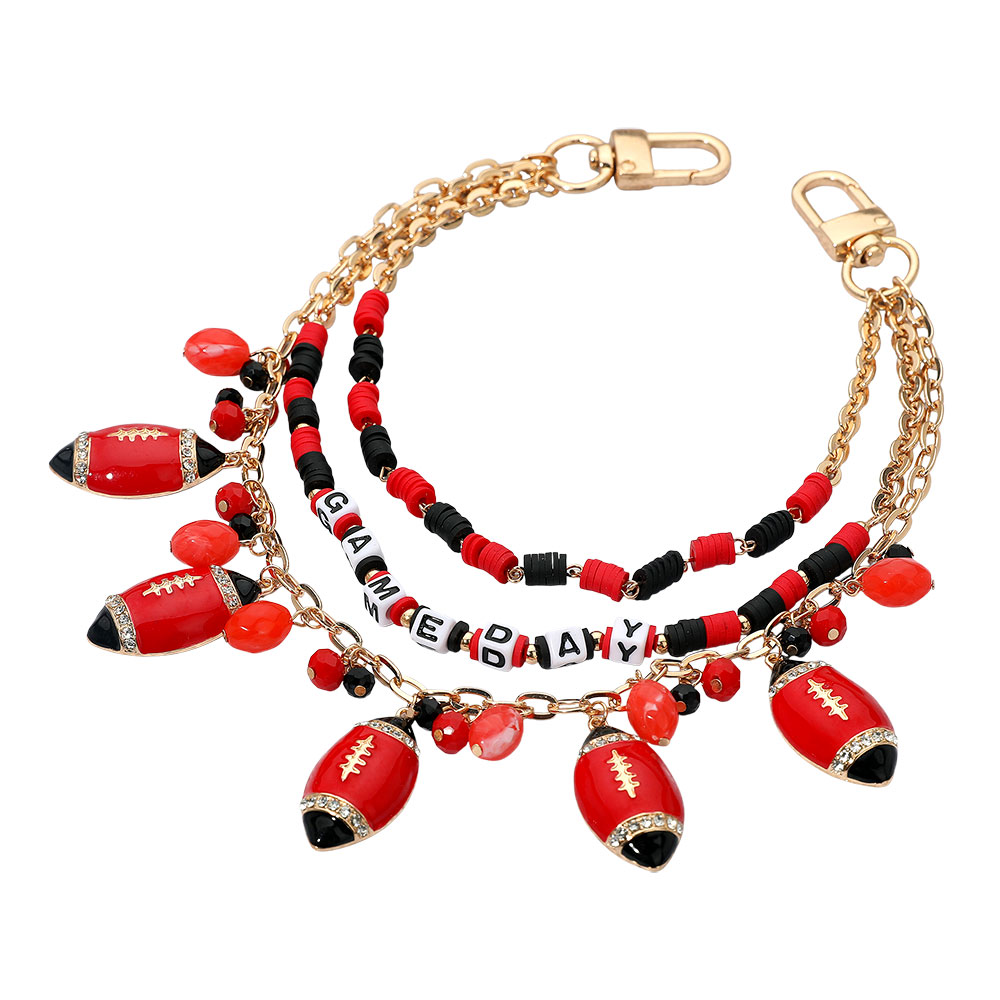 Football Charm Embellished GAME DAY Heishi Beaded Layered Bag Charm