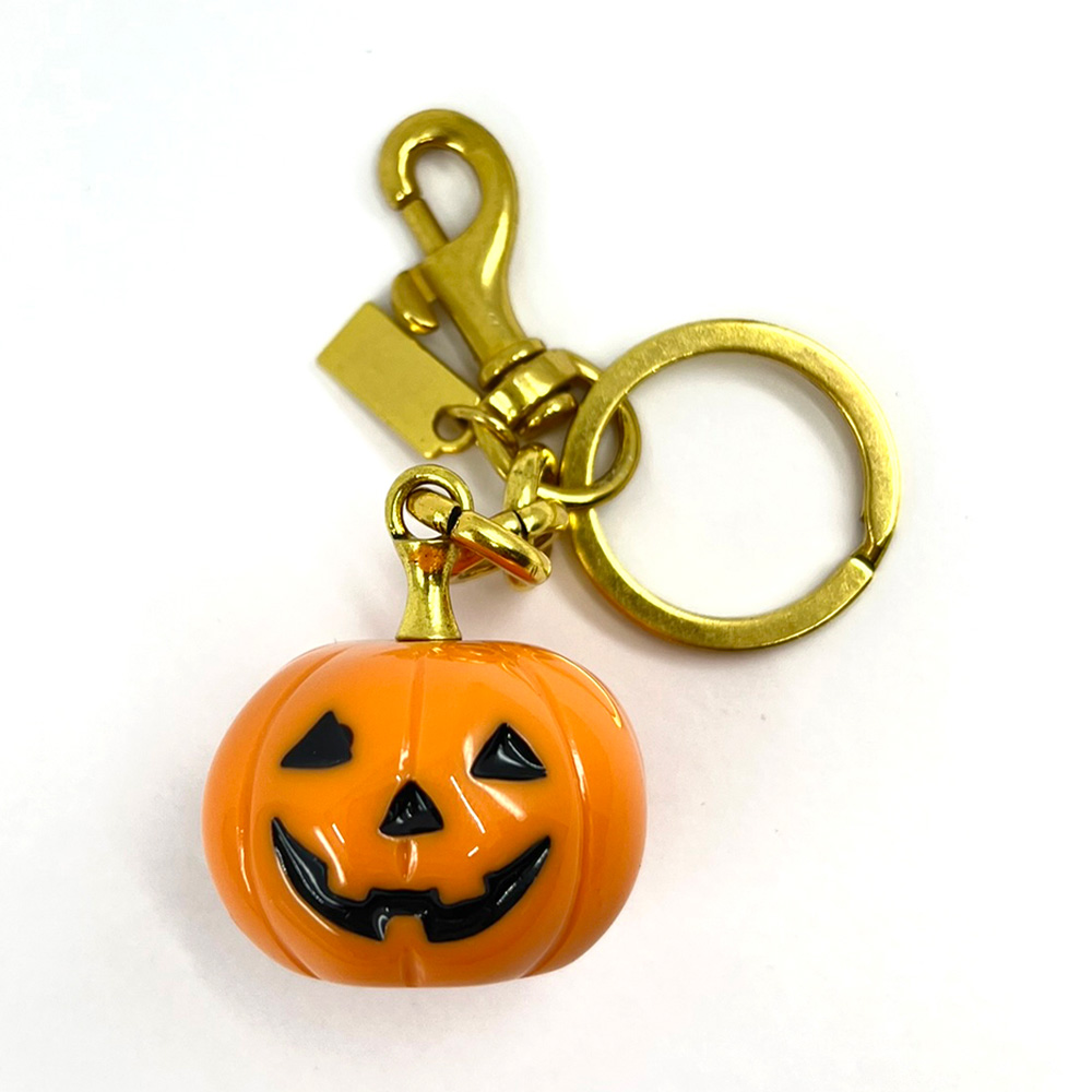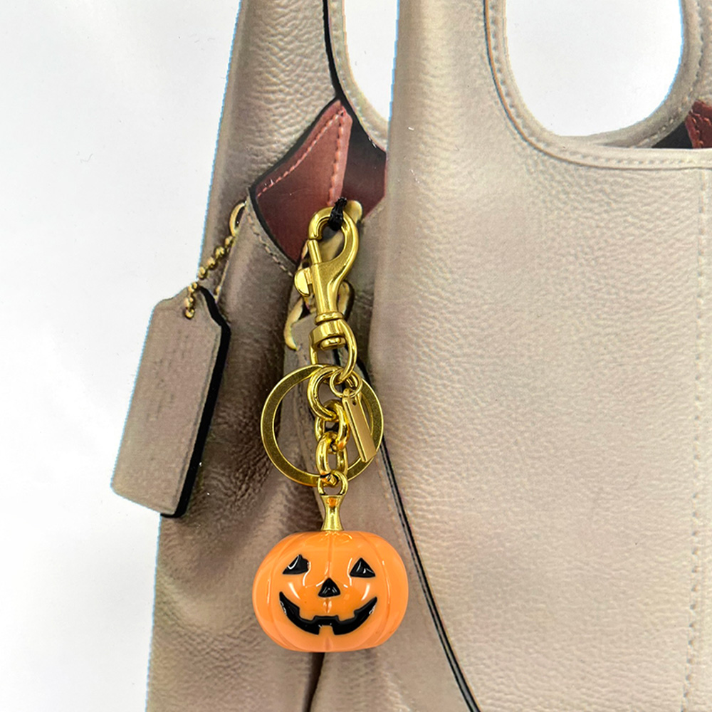 Details • Size : 1.6" X 2.75", 4.25" L • Celebrate spooky season with this pumpkin jack-o’-lantern keychain featuring a cheerful carved face and gold-tone hardware. A fun Halloween accessory perfect for decorating bags, keys, or gifting to friends who love festive charm. • Lead and Nickel Compliant
