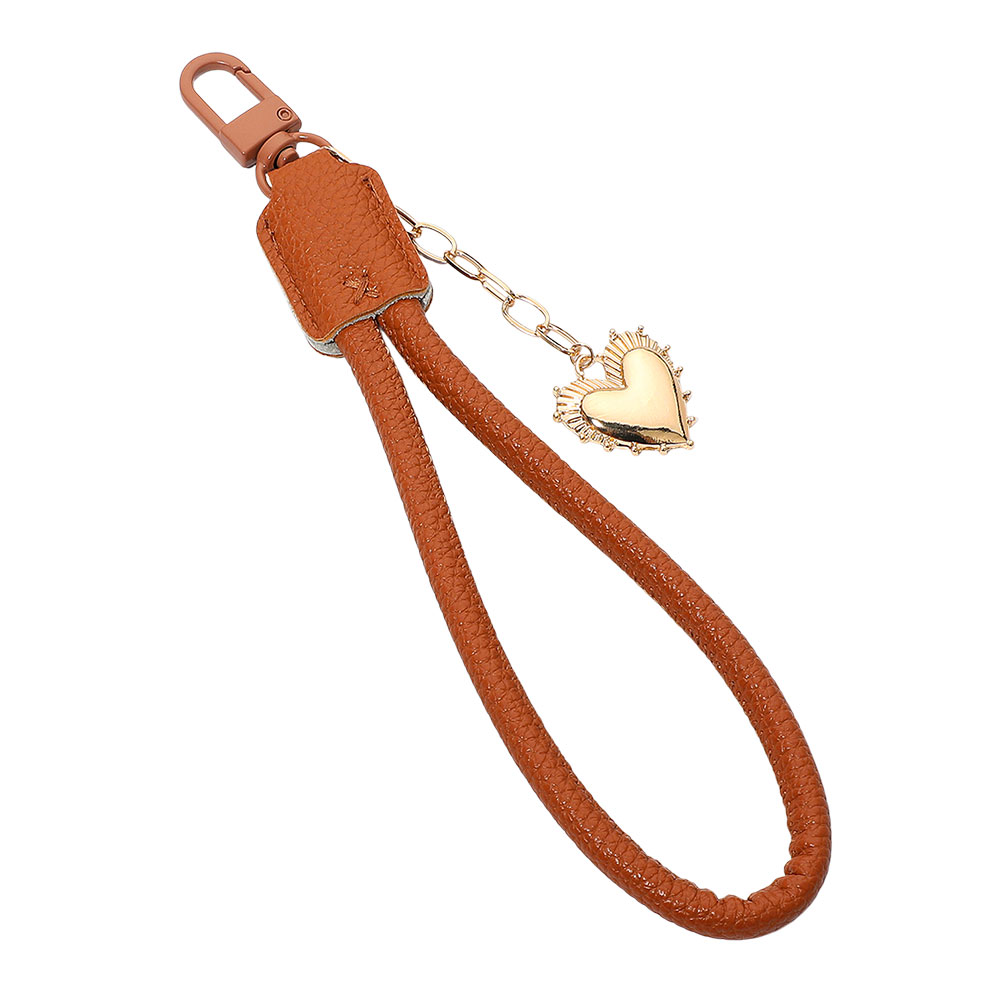 Heart Charm Drop Faux Leather Wristlet Keychain Bag Charm