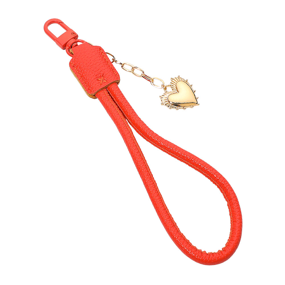 Heart Charm Drop Faux Leather Wristlet Keychain Bag Charm Heart Charm Drop Faux Leather Wristlet Keychain Bag Charm