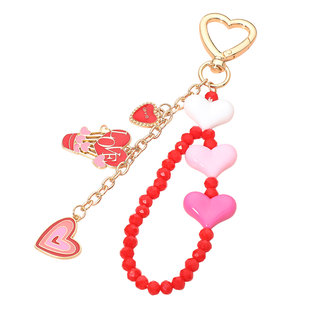 Details • Size : 5.75" L, 1.2" X 4" • Charming heart-themed keychain featuring layered heart charms and a beaded loop detail for playful, eye-catching style. Designed to add personality to keys, bags, or accessories, this keychain makes a fun statement piece for gifting, everyday use, and boutique accessory collections. • Lead and Nickel Compliant