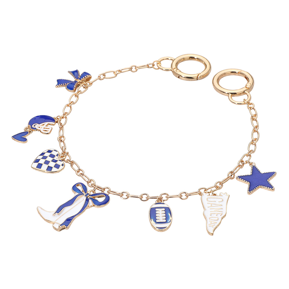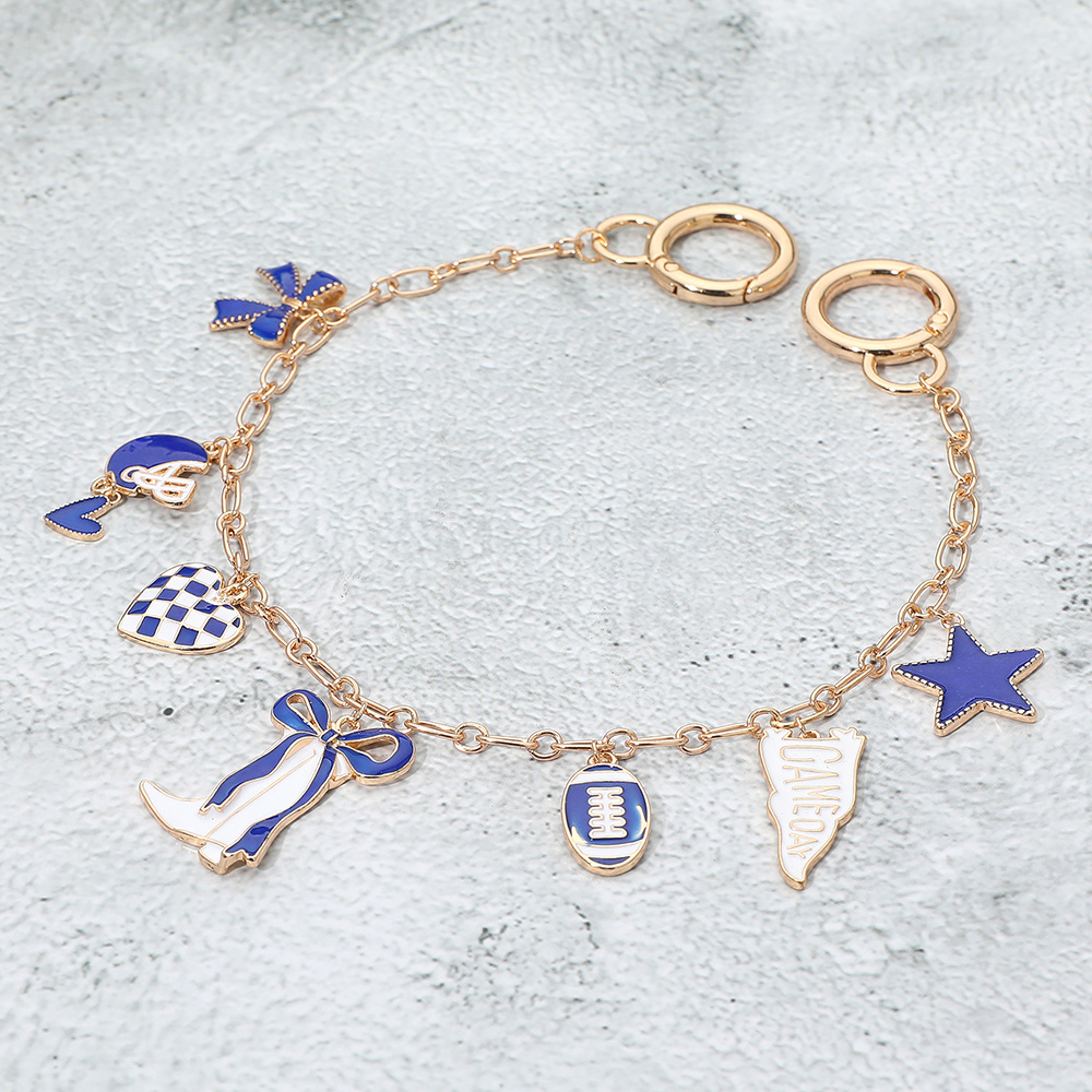 Details • Size : 13.5" L • Decor Size : 1.3" L • Bag charm featuring playful gameday accents including football, helmet, boots, stars, hearts, and cheer icons. A fun accessory to show team spirit, personalize bags, and add a sporty touch to gameday outfits. • Lead and Nickel Compliant