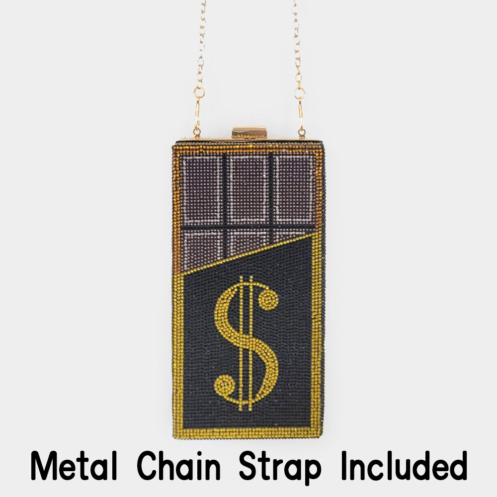 Bling Dollar Sign Chocolate Vertical Clutch Bag