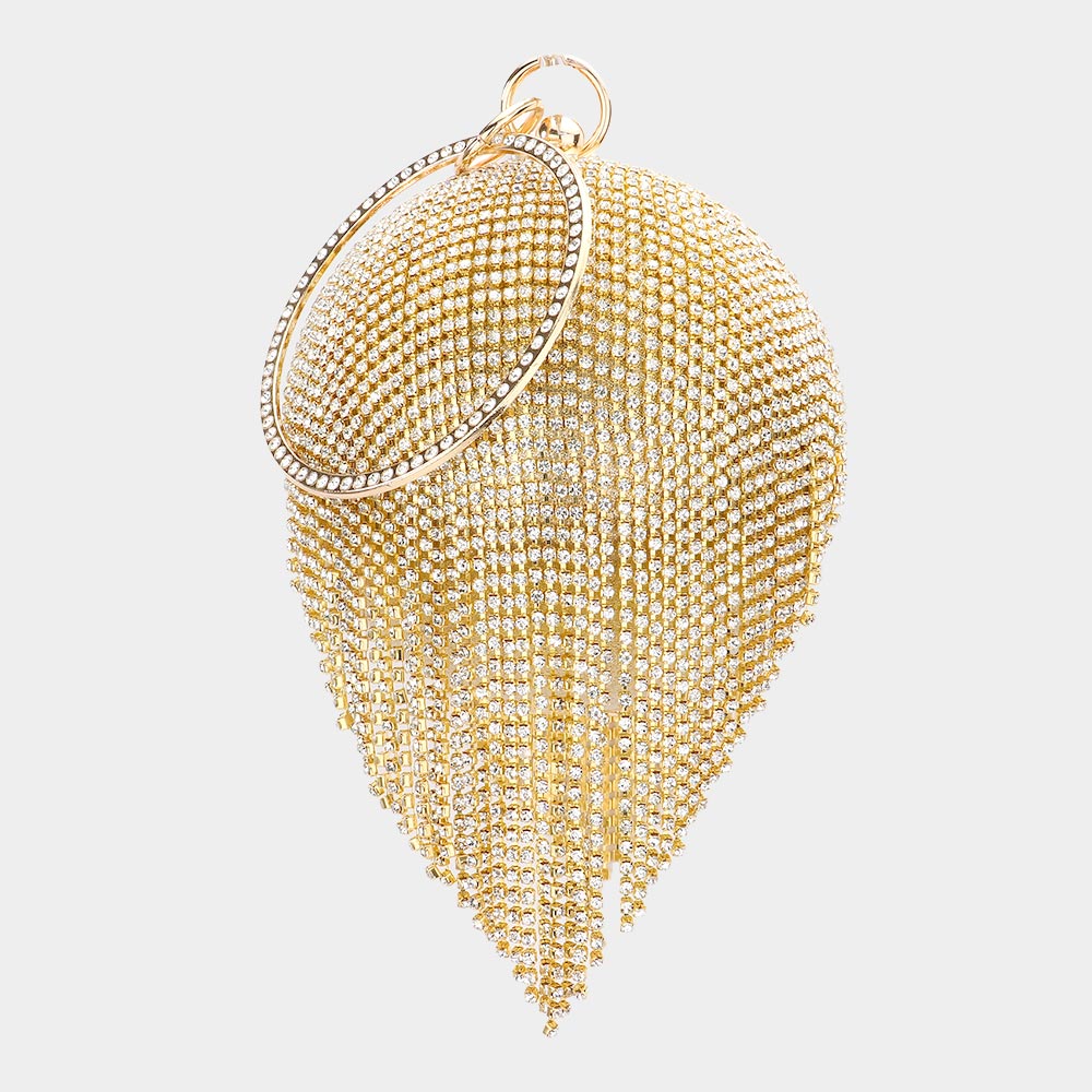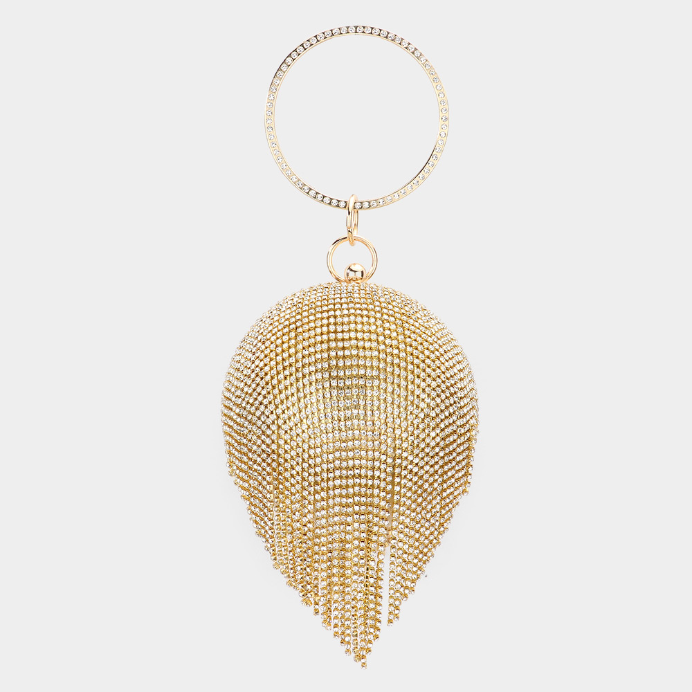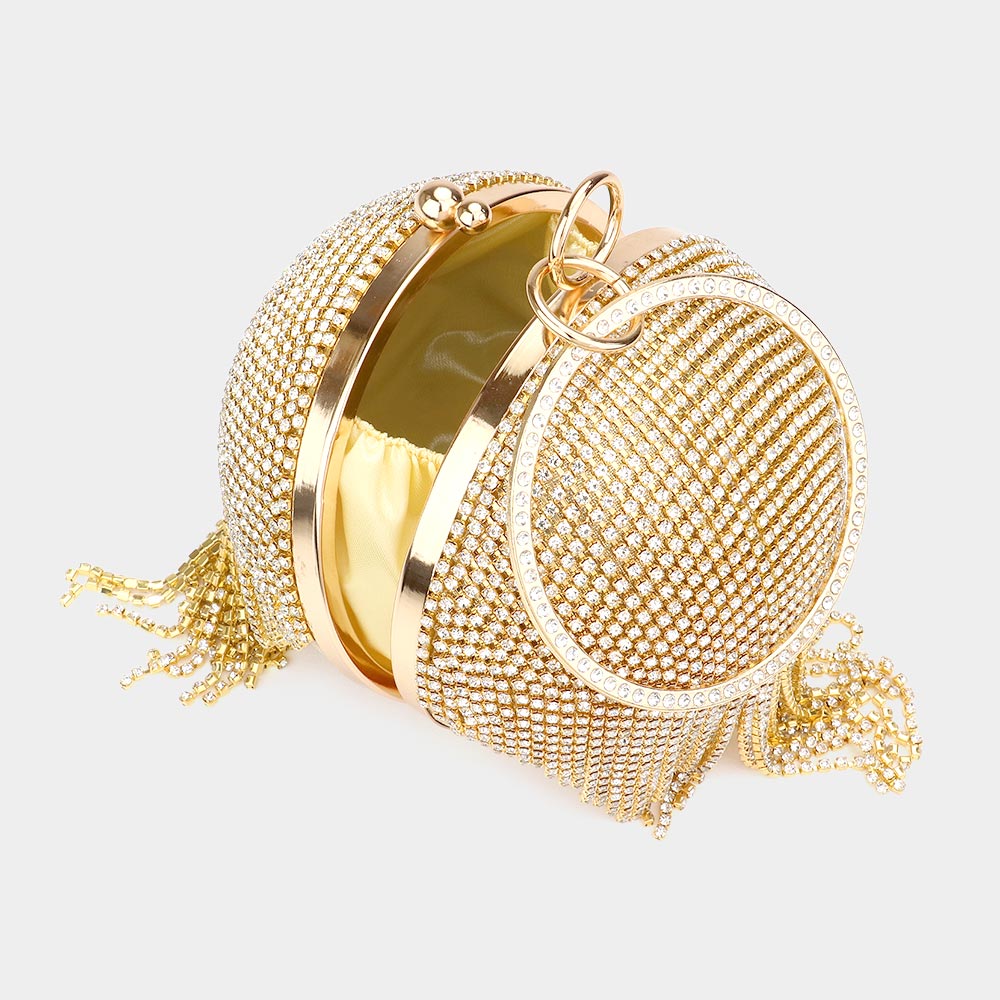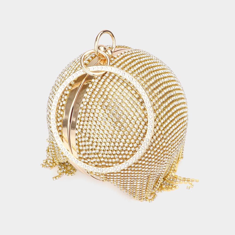 Bling Round Ball Fringe Evening Tote / Crossbody Bag