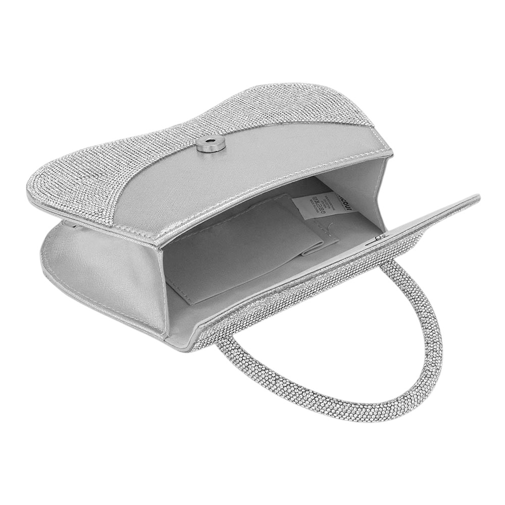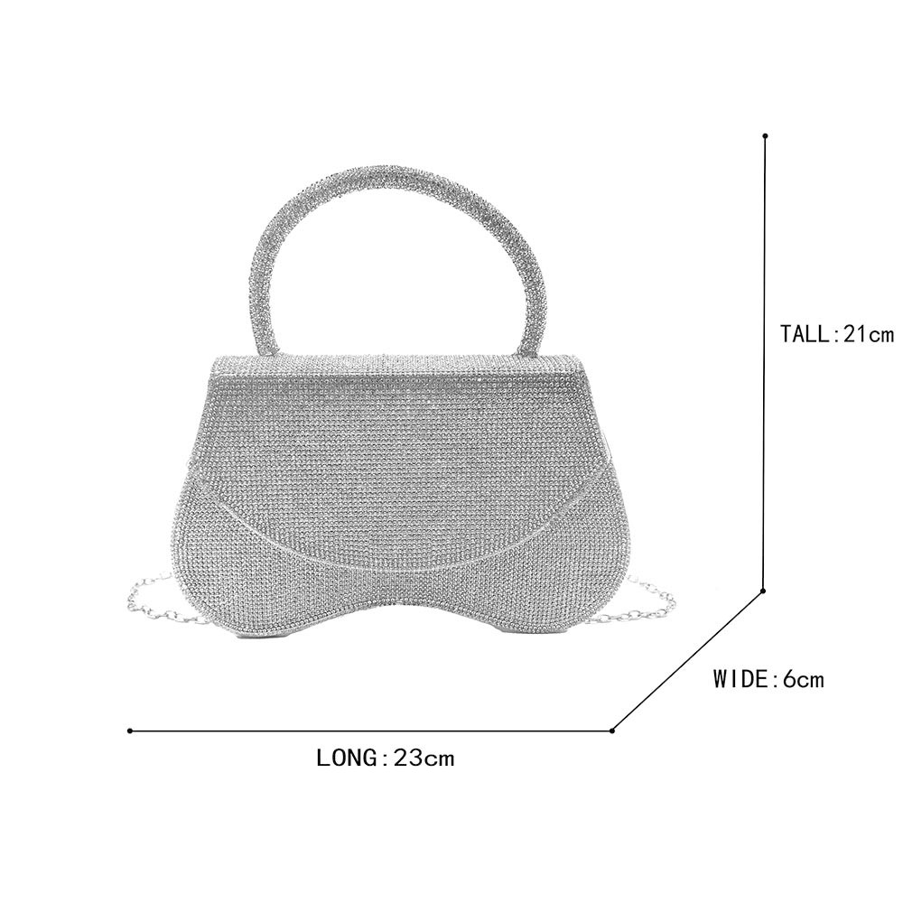 • Discover a refined rhinestone handle bag featuring a sculpted flap design, spacious interior, and detachable chain strap. Perfect for evenings and special events, this statement accessory offers versatile styling and timeless sophistication in a compact form.