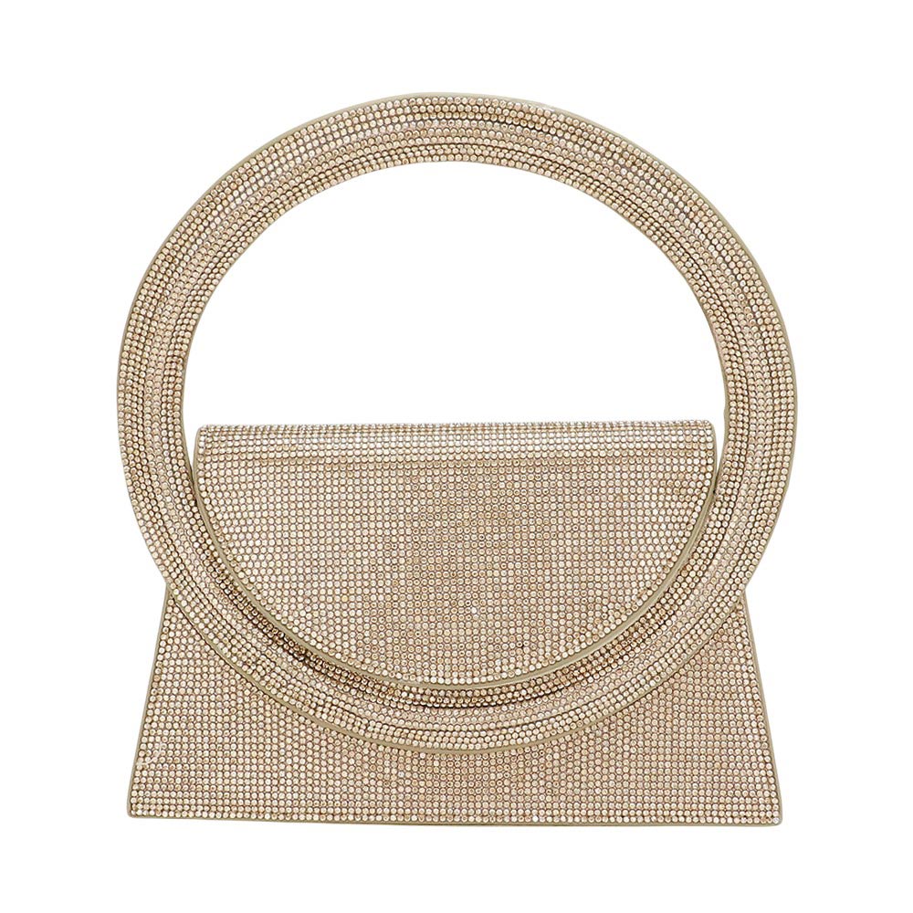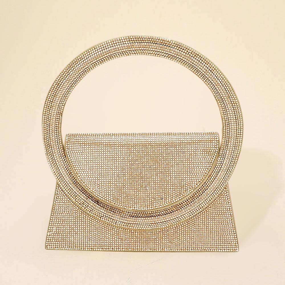 • Discover a luxe evening bag featuring a striking circular handle and sparkling detailing. Designed with a structured silhouette and organized interior, it offers standout style for formal events, parties, and special occasions with a refined, modern touch.