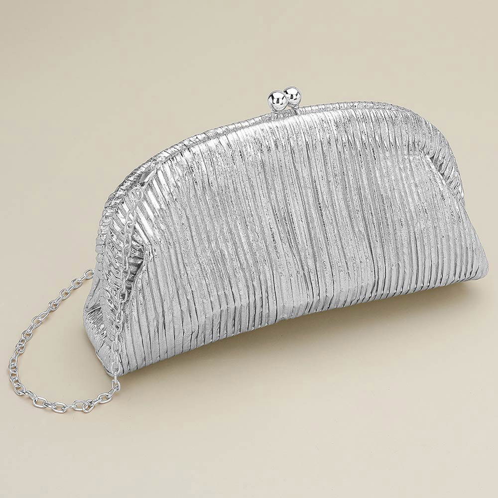 • Discover a refined pleated evening clutch designed for effortless elegance at formal events. Featuring a secure kiss-lock closure, spacious interior pocket, and detachable chain strap, this timeless accessory keeps essentials organized while elevating any special-occasion look.