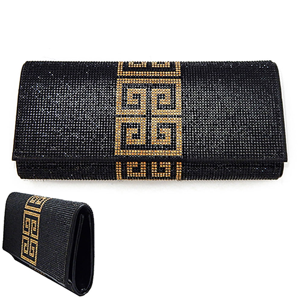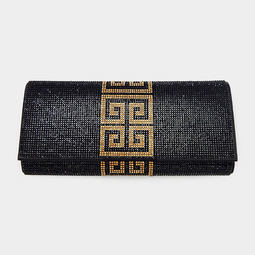 Greek Pattern Bling Evening Clutch Crossbody Bag