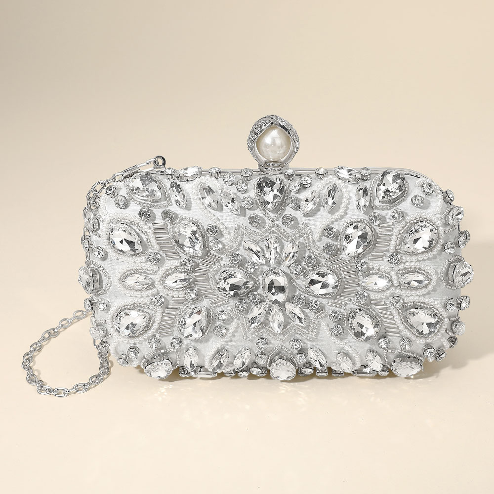 • This stunning evening clutch dazzles with intricate crystal embellishments and a luxurious pearl clasp for a sophisticated finish. Designed with a detachable chain strap, it’s ideal for weddings, galas, or special occasions, adding a radiant touch of glamour to any formal outfit.