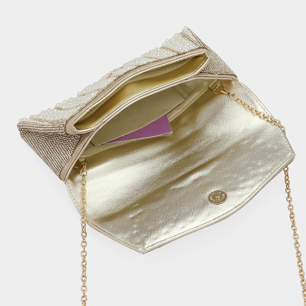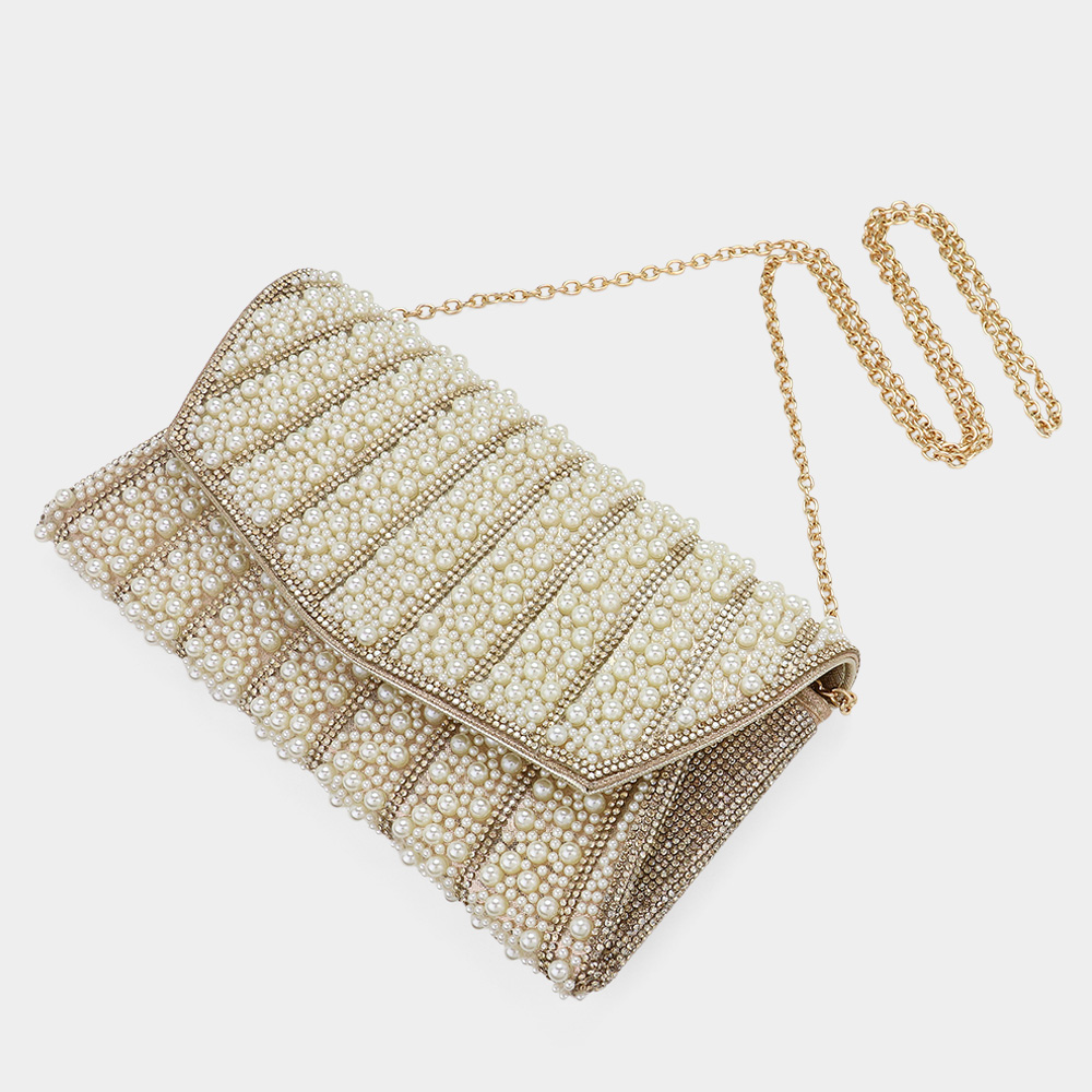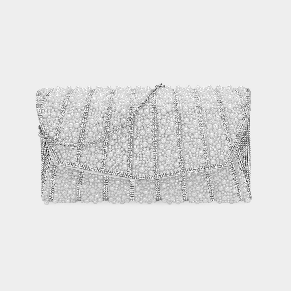 Pearl Stone Bling Embellished Flap Evening Clutch Bag