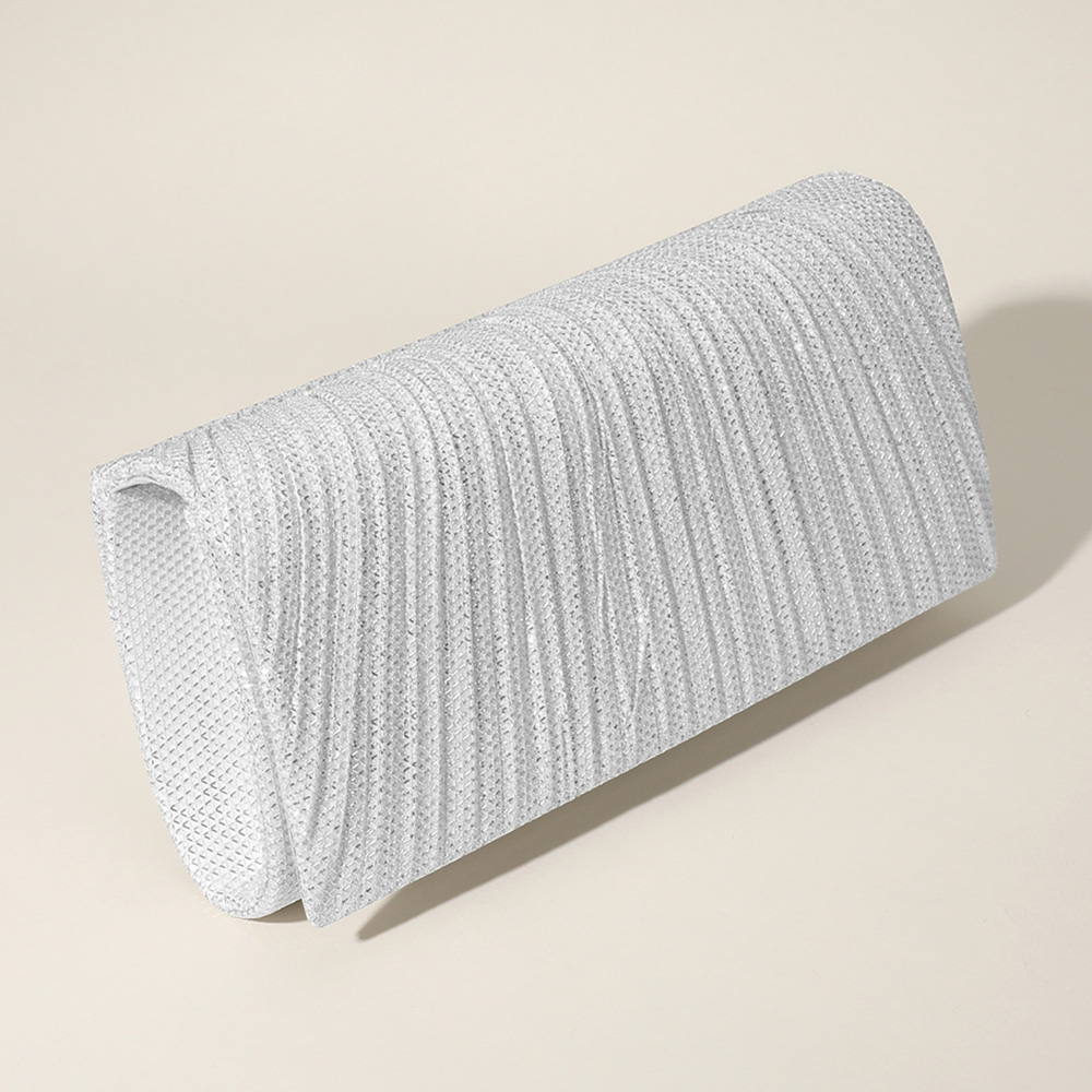 Pleated Shimmery Evening Clutch / Crossbody Bag