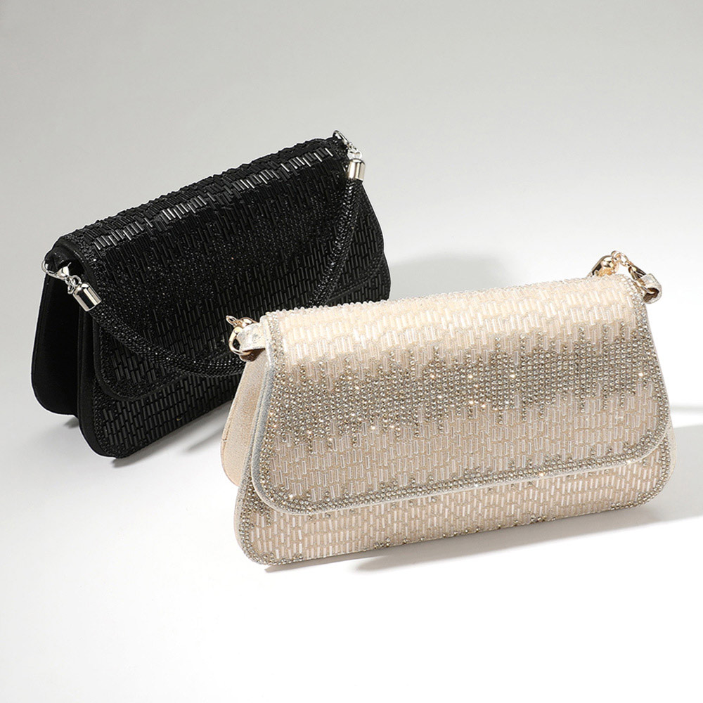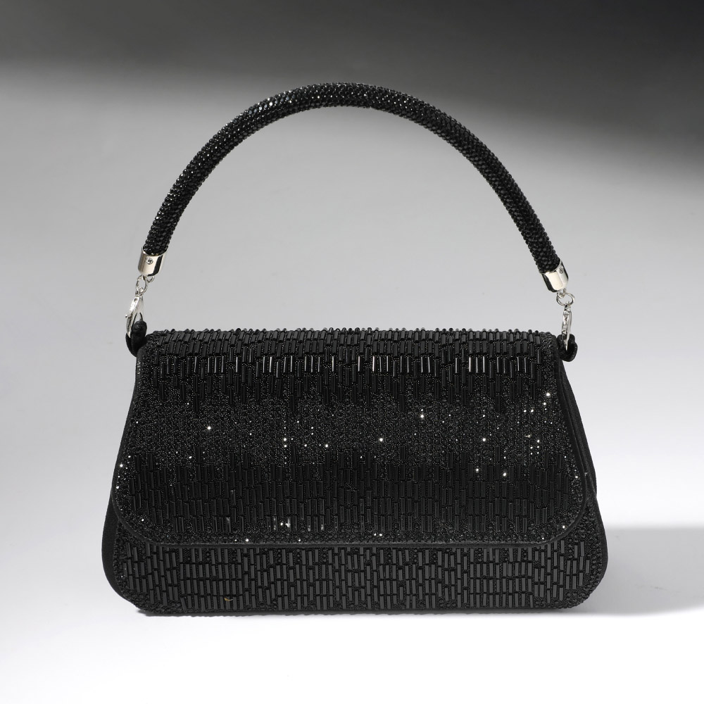 Rhinestone Bar Beads Studded Top Handle Evening Bag / Crossbody Bag