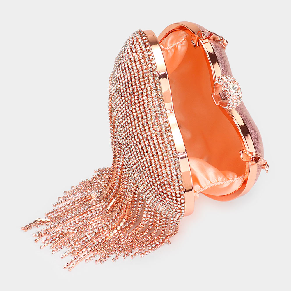 Rhinestone Fringe Heart Evening Tote Clutch Crossbody Bag