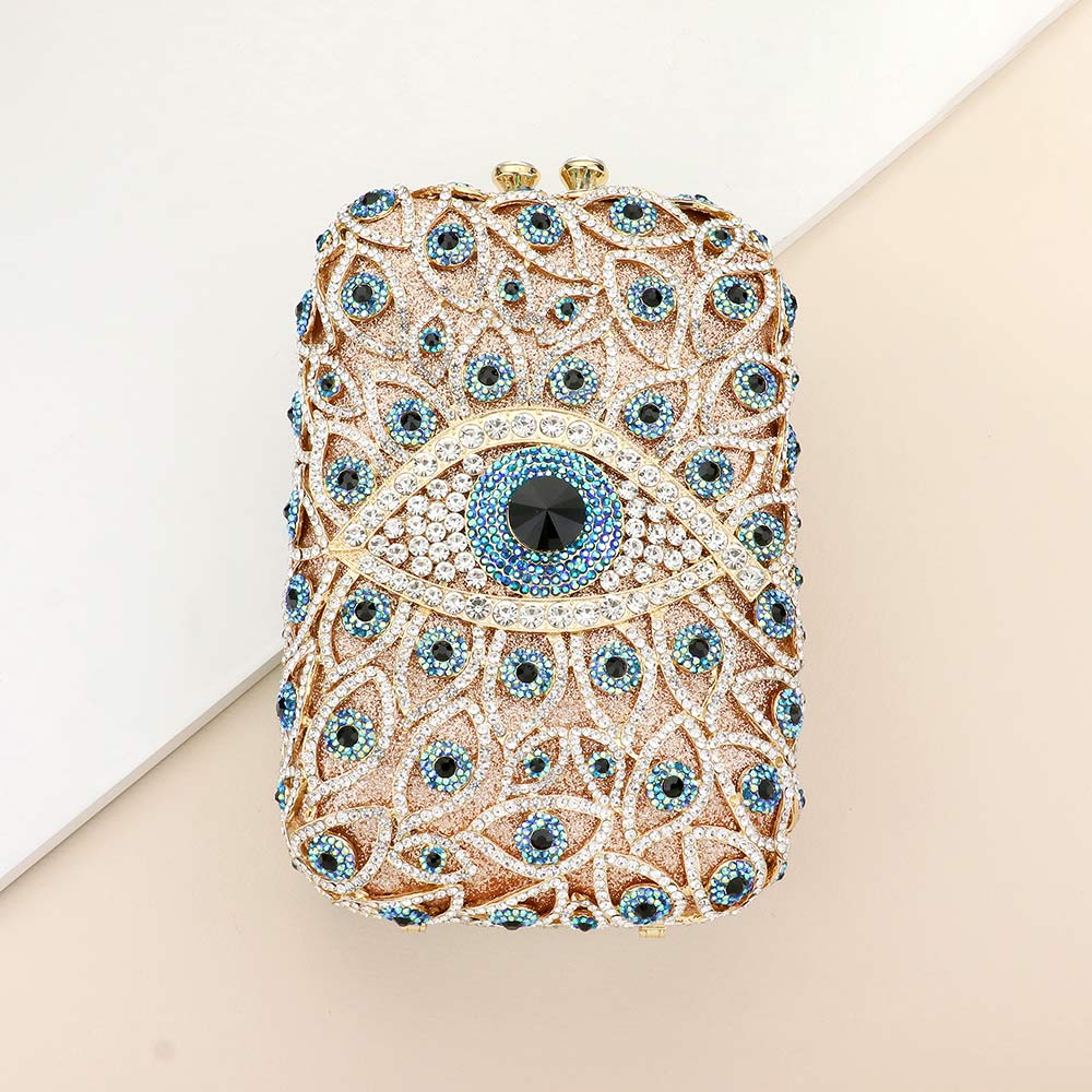 Rhinestone Paved Bling Evil Eye Clutch Bag