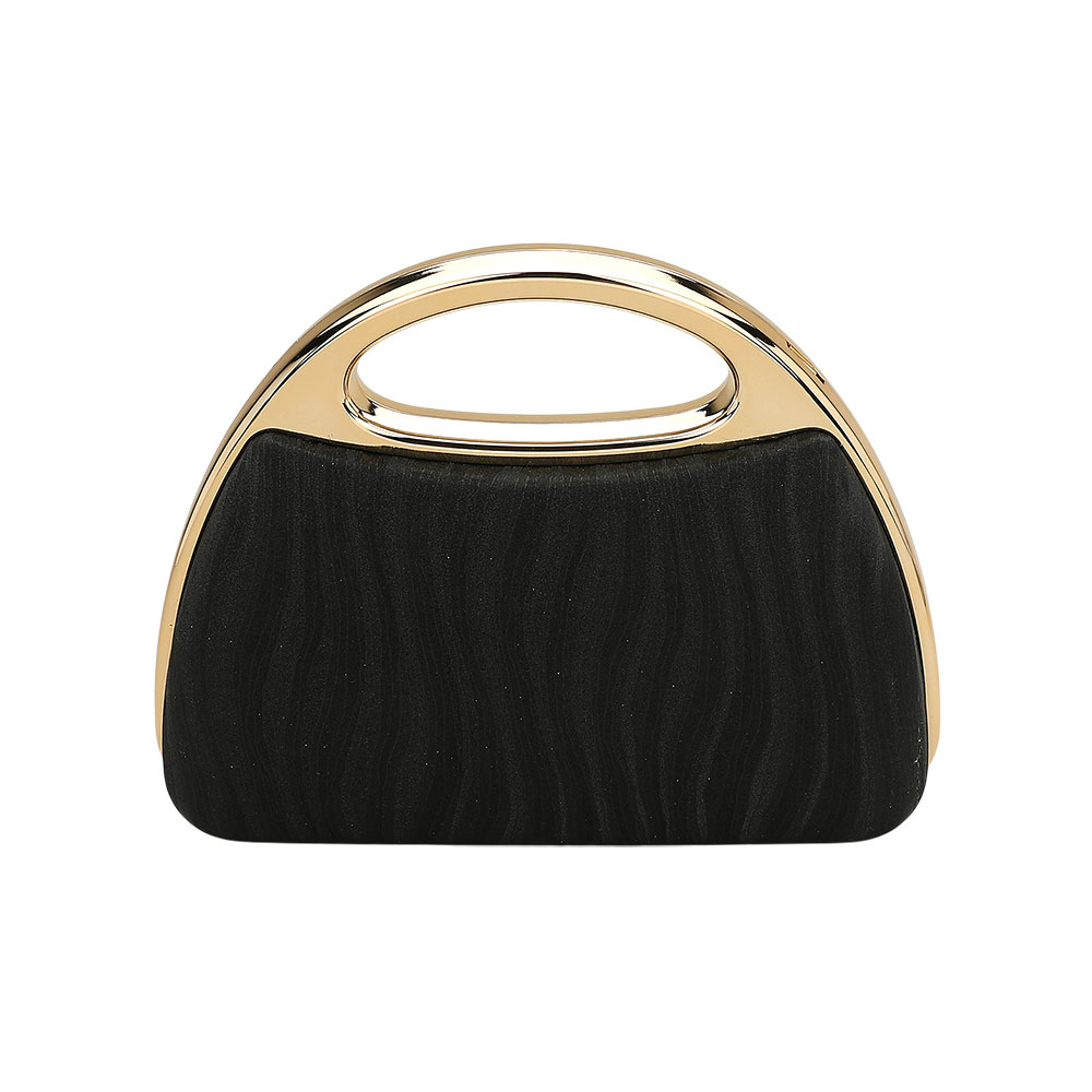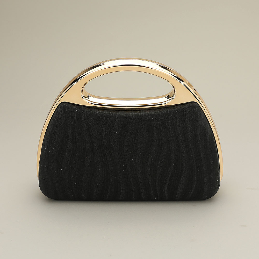 • A refined evening handbag featuring a sculpted silhouette, metallic handle, and shimmering textured body. Designed for formal events, it offers a polished finish and a detachable chain for versatile styling, keeping essentials organized while enhancing any sophisticated look.