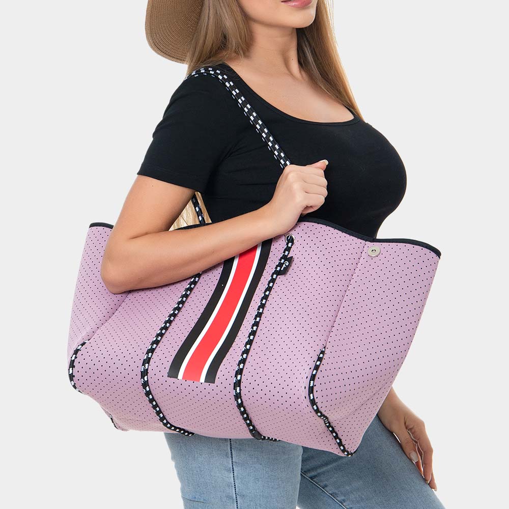 2PCS - Color Block Accented Solid Beach Tote Bag and Mini Pouch Bag Set