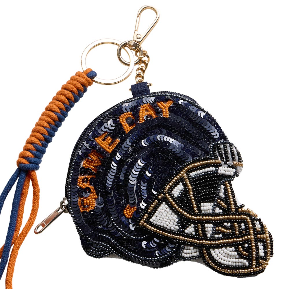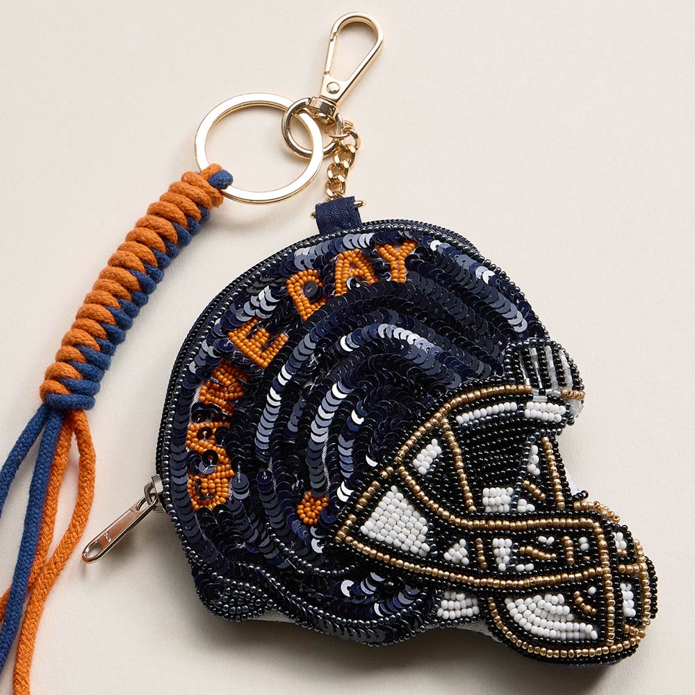 AUBURN GAME DAY Football Helmet Sequin Seed Beaded Knot Keychain Mini Pouch Bag