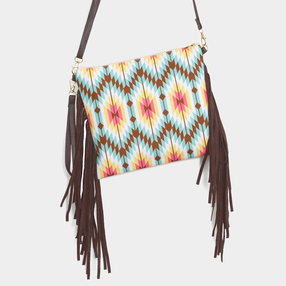 Aztec Print Tassel Wristlet Clutch / Crossbody Bag