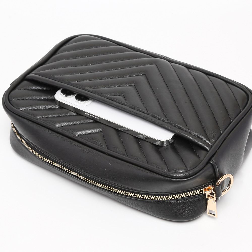 Solid Tumbler Carrier Holder Chevron Pattern Strap Crossbody Bag