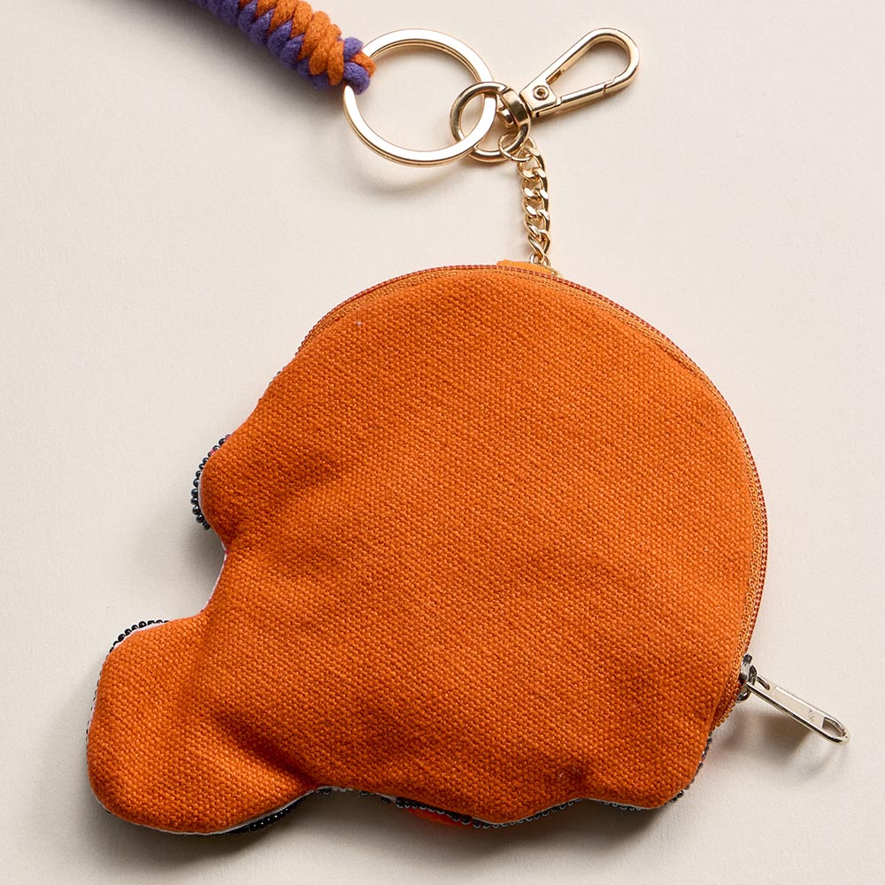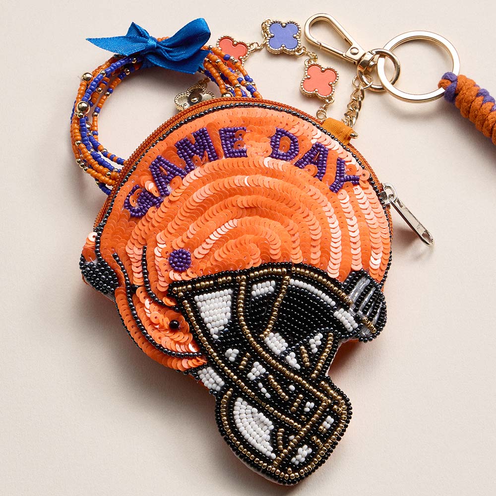 CLEMSON GAME DAY Football Helmet Sequin Seed Beaded Knot Keychain Mini Pouch Bag