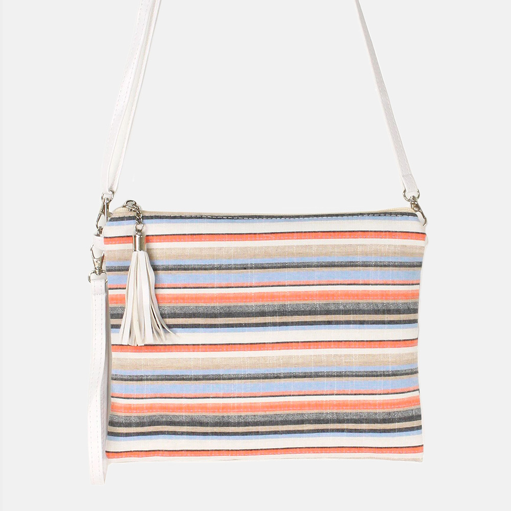 Colorful Striped Wristlet Clutch / Crossbody Bag
