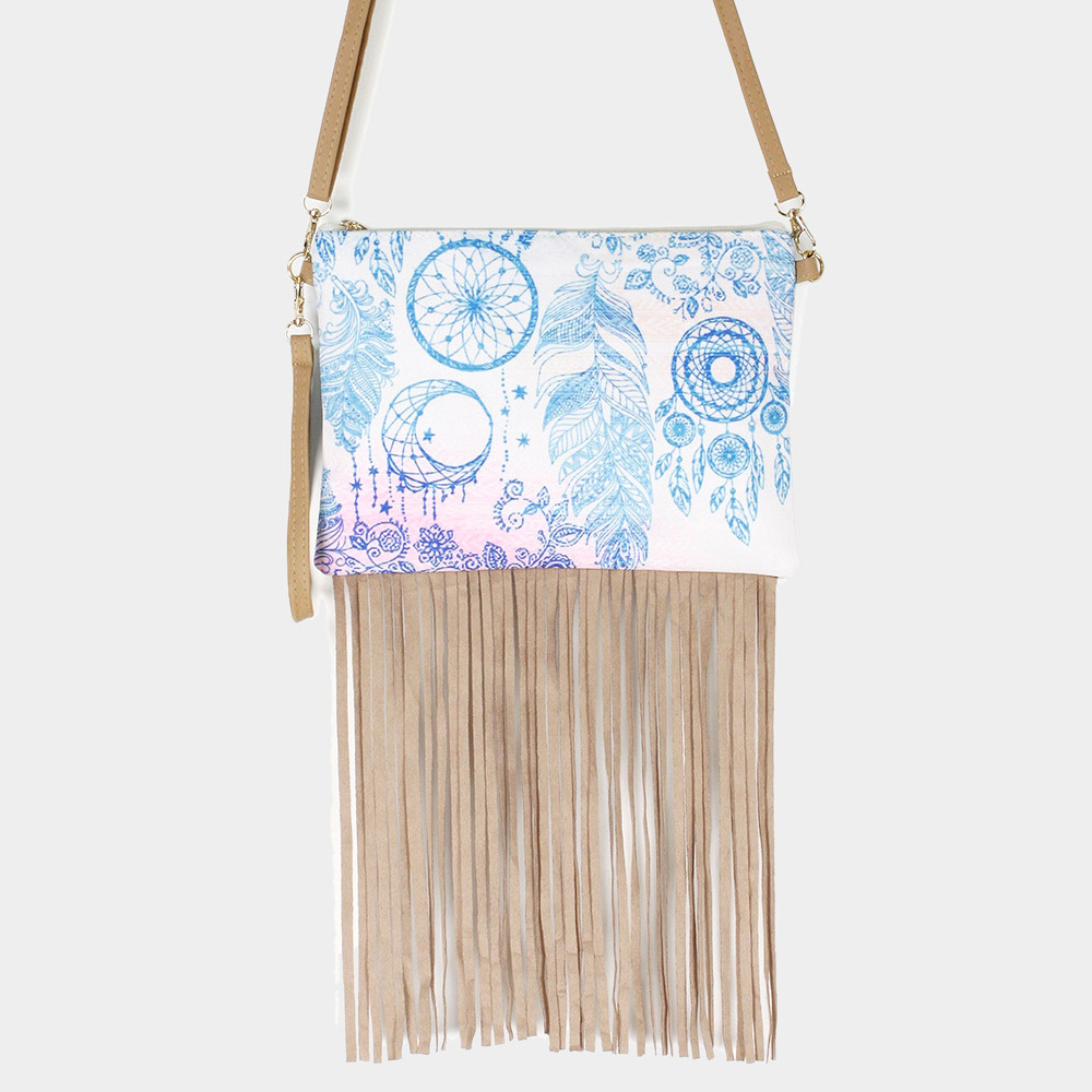 Dream Catcher Print Tassel Wristlet Clutch / Crossbody Bag