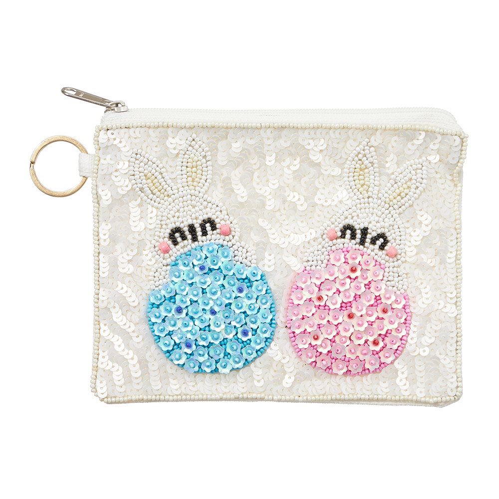 Easter Bunny Flower Sequin Seed Beaded Mini Pouch Bag