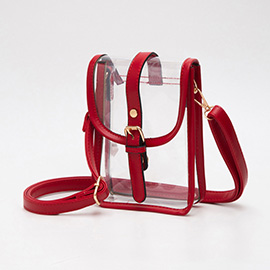 Faux Leather Belt Buckle Pointed Transparent Crossbody Bag