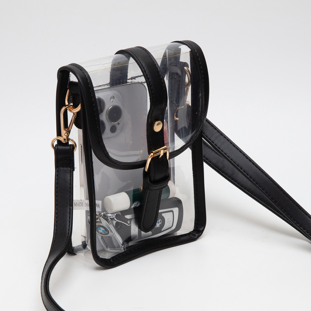 Faux Leather Belt Buckle Pointed Transparent Crossbody Bag
