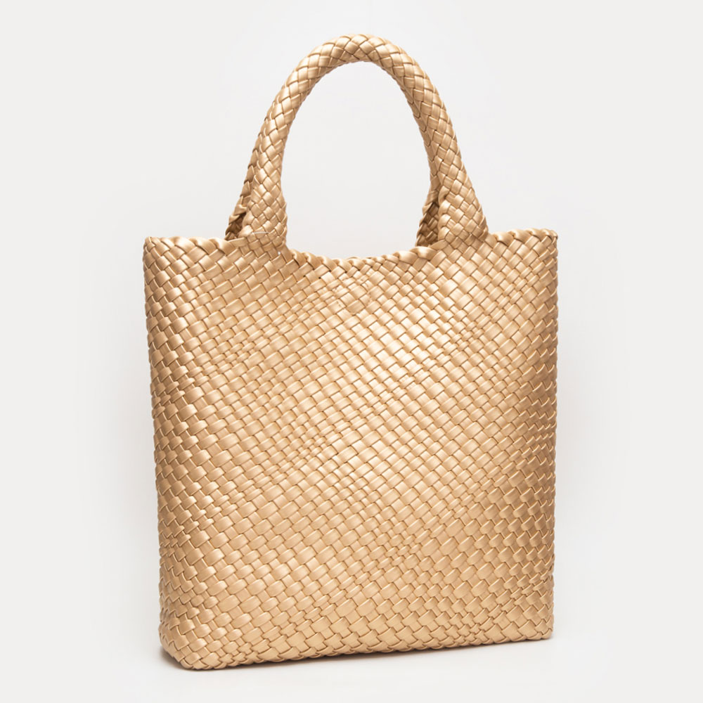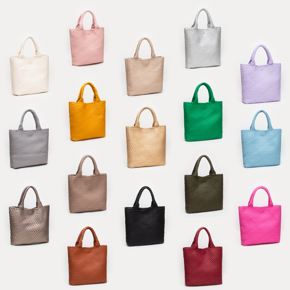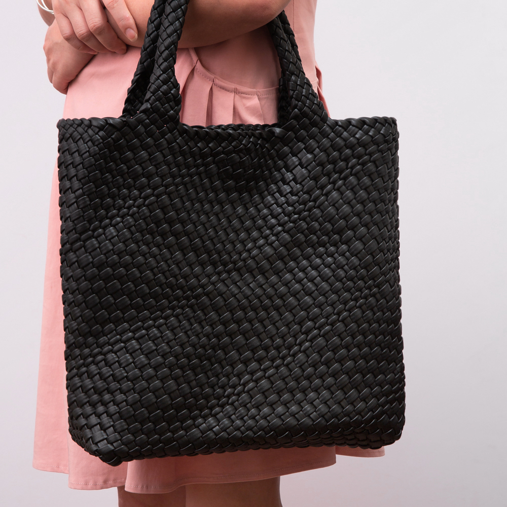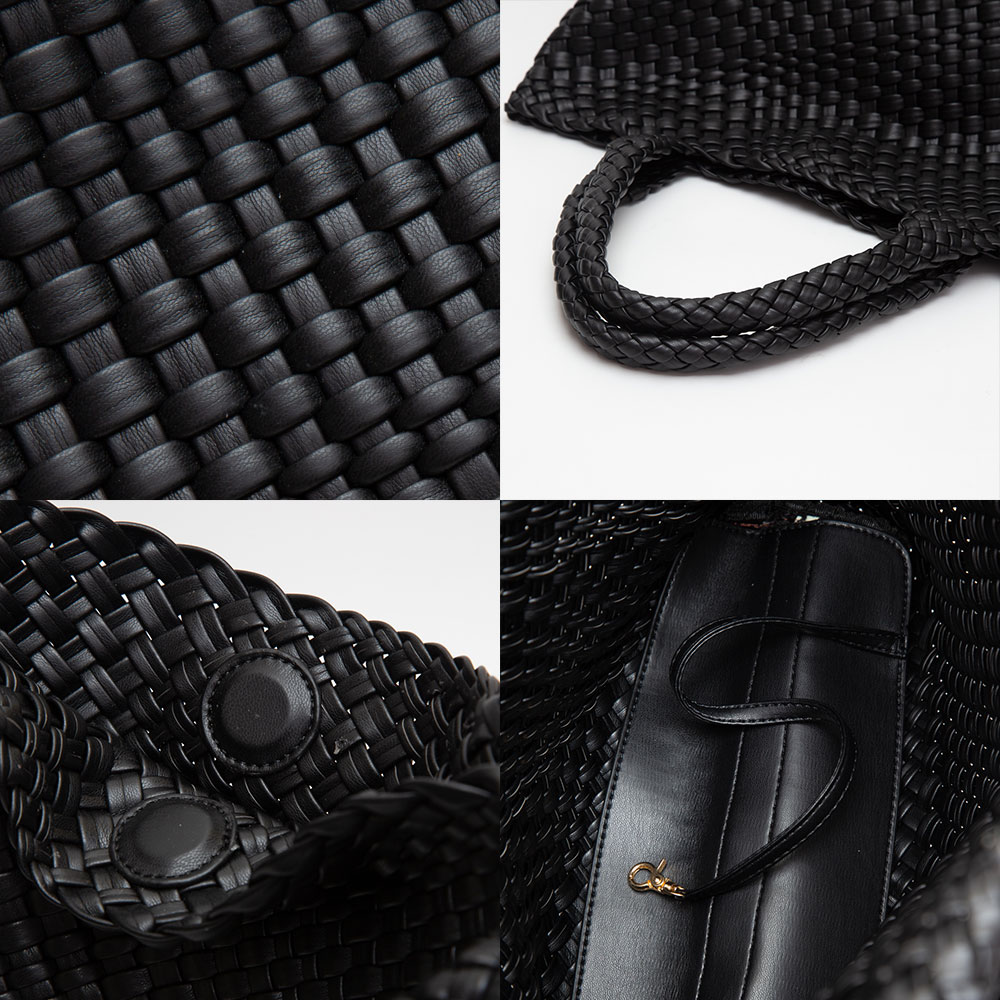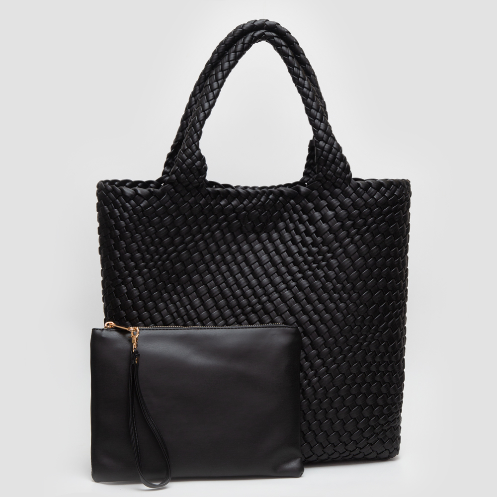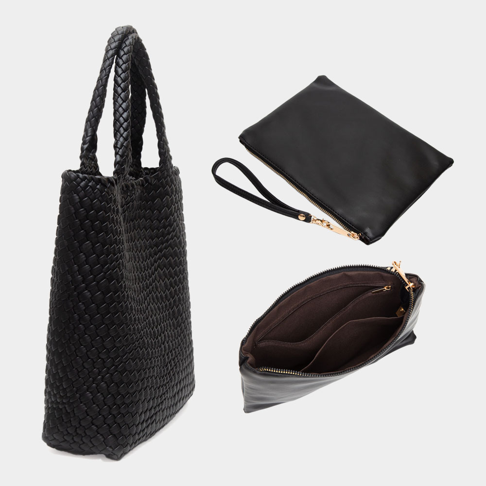 Faux Leather Braided Top Handle Tote Bag with Pouch