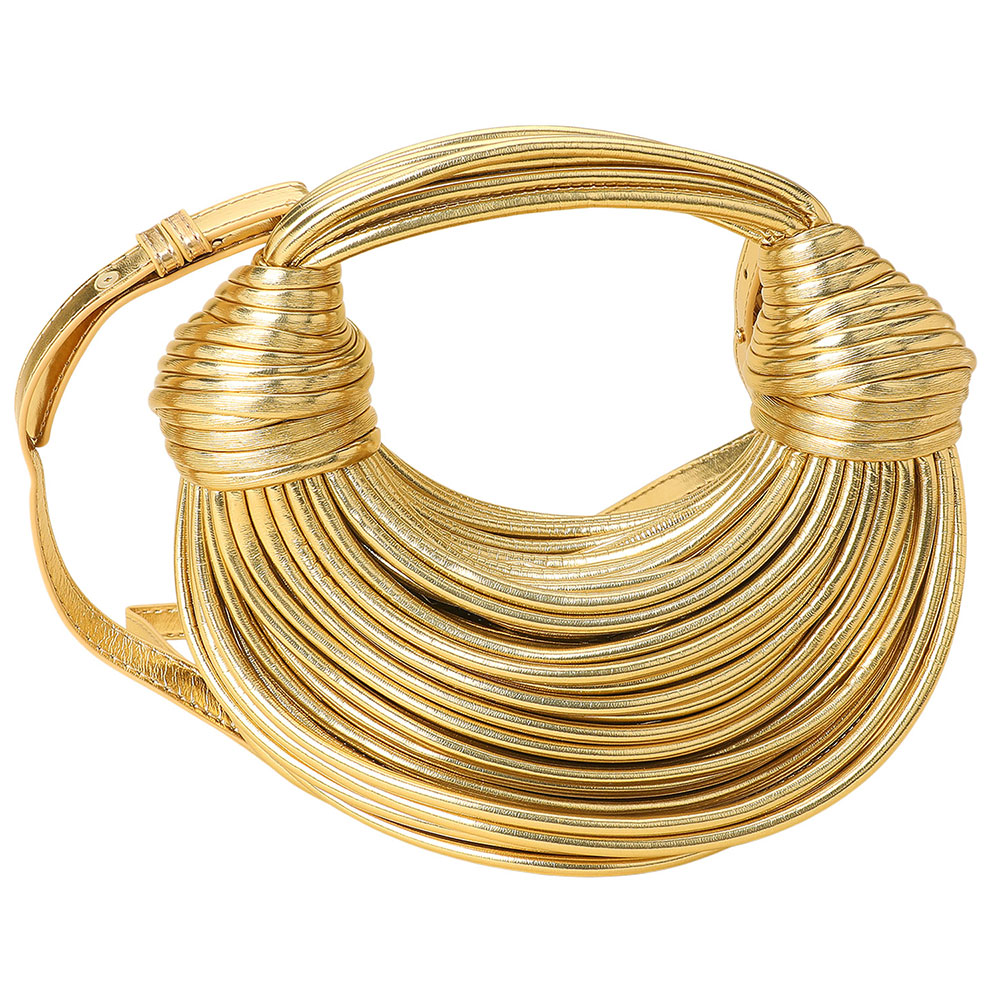 Details • Size : 11" X 4" X 3" • Top Handle Size : 5" L • Strap Size : 40" L / Adjustable, Detachable • Zipper Closure • Stand out with this textured statement shoulder bag featuring a sculpted design and intricate wrapped detailing. Its modern silhouette and artistic structure make it a versatile piece that adds a touch of high-fashion sophistication to any day or evening ensemble.