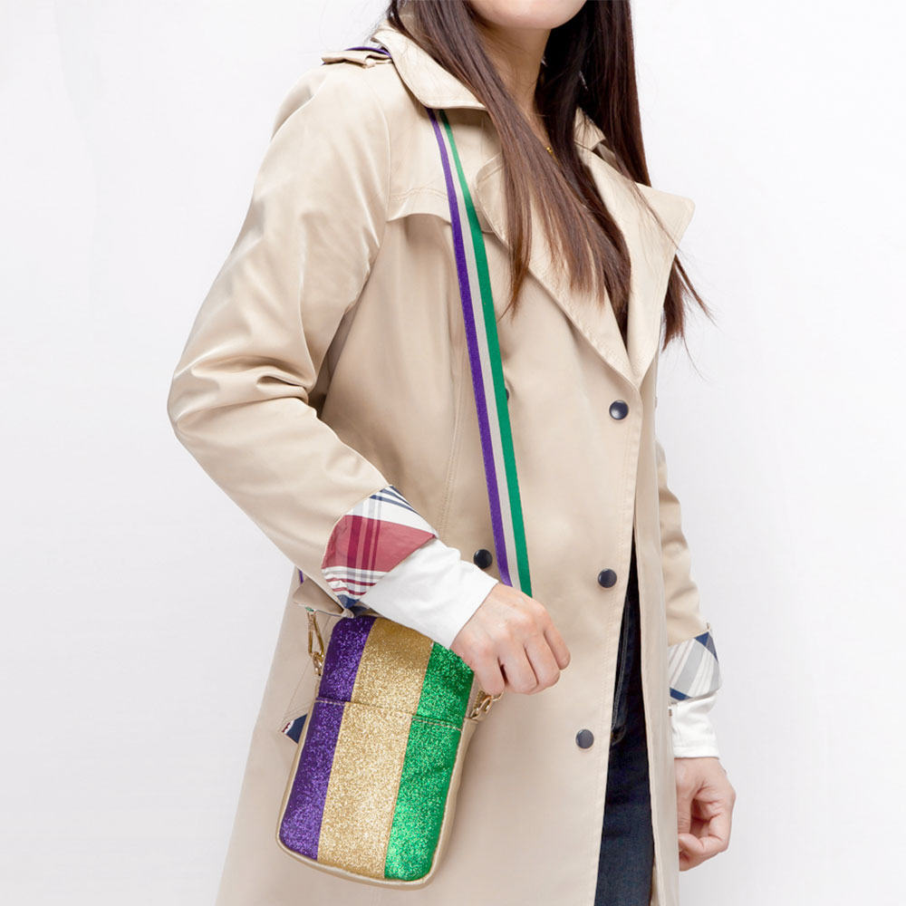 Faux Leather Mardi Gras Sparkle Front Small Crossbody Bag
