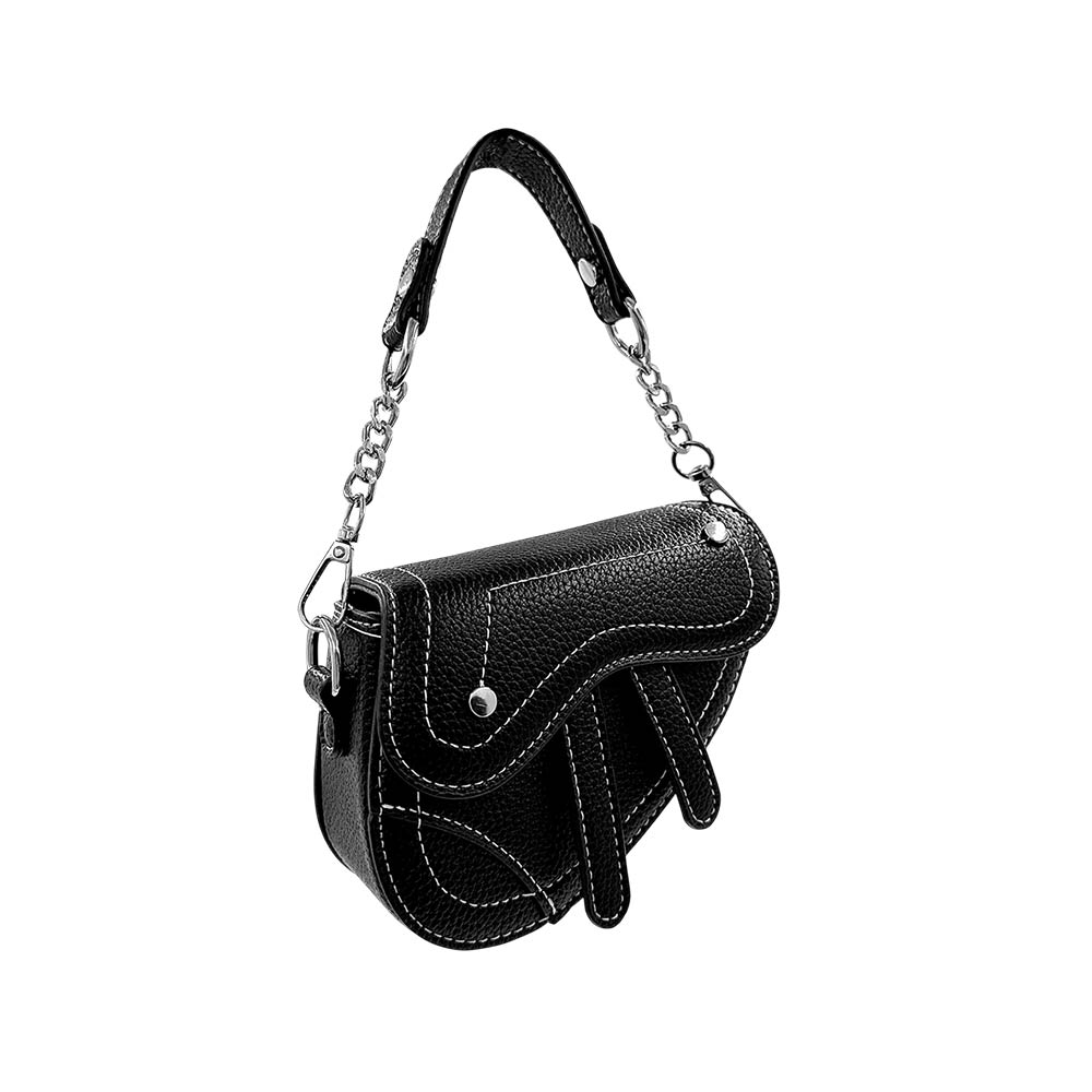• This mini saddle style shoulder bag features a compact silhouette with a secure flap closure for everyday convenience. Designed with a structured shape and comfortable shoulder strap, it is ideal for casual outings, travel, and day-to-night styling while keeping essentials neatly organized and easy to access.