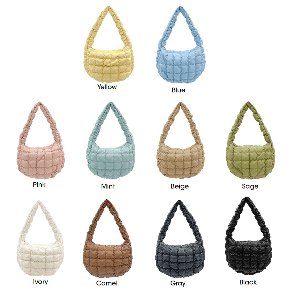 Faux Leather Quilted Puffer Shoulder Cloud Bag
