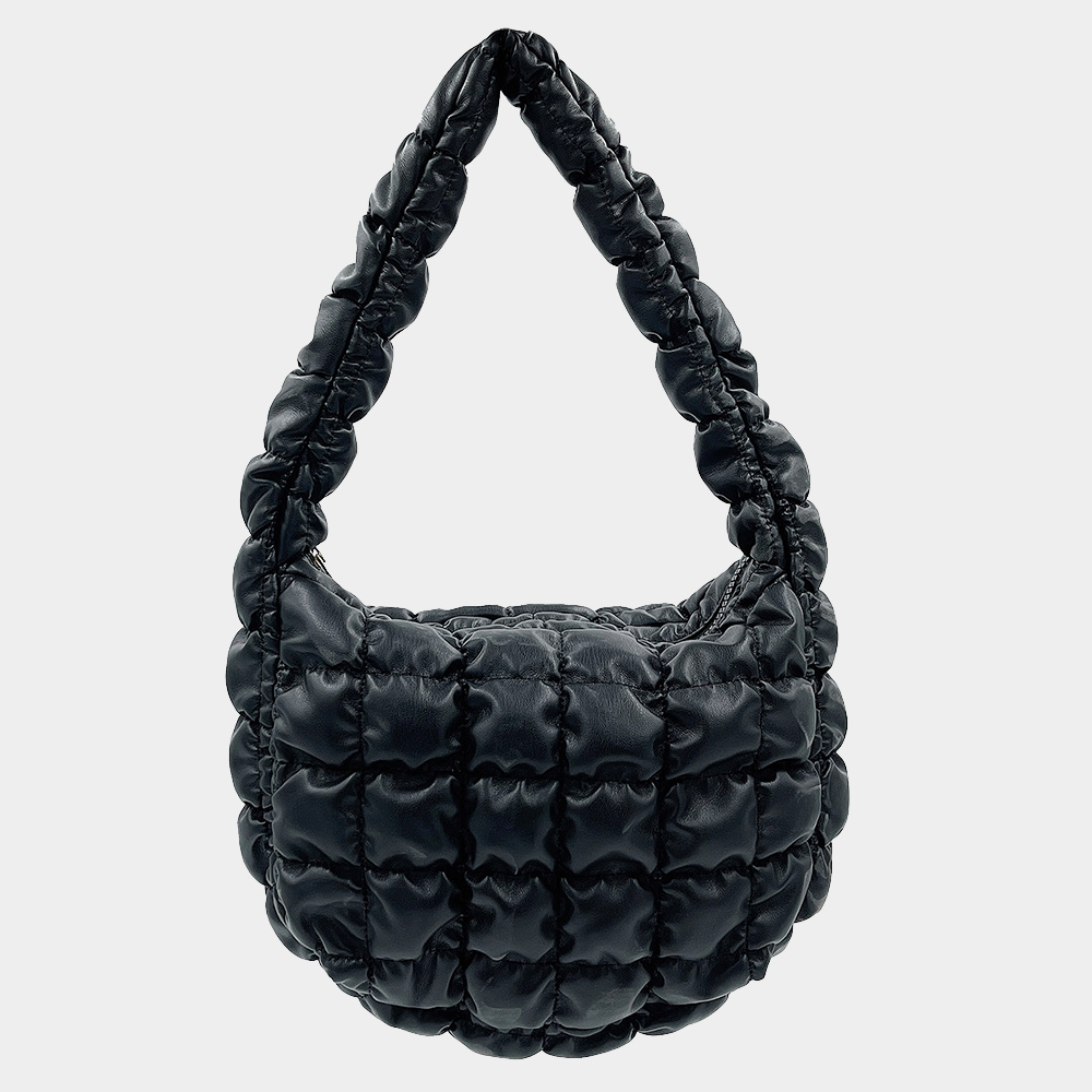 Faux Leather Quilted Puffer Shoulder Cloud Bag