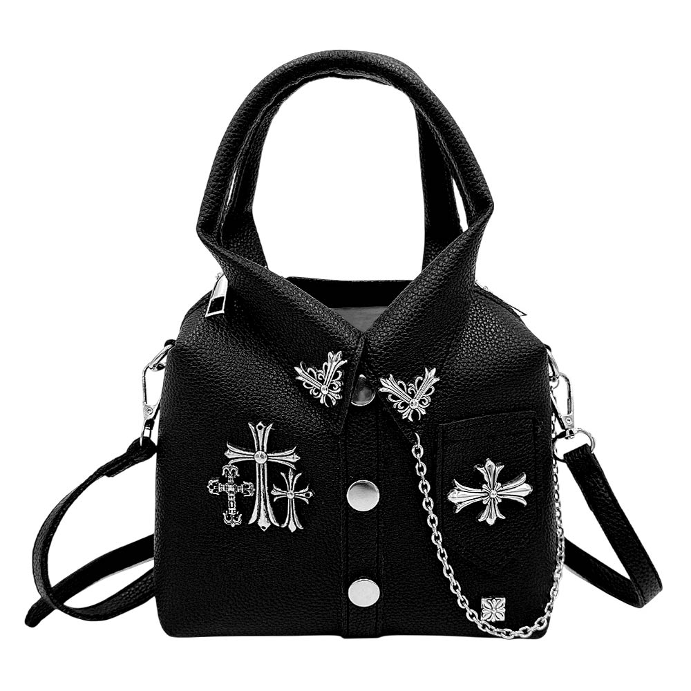 Faux Leather Studded Cross Mini Jacket Crossbody Bag