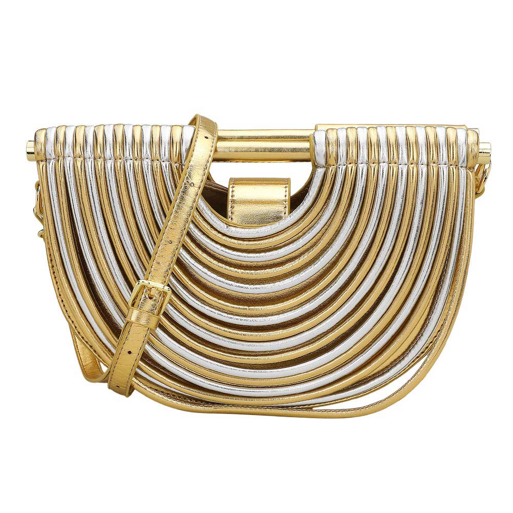 Faux Leather Unique Half Moon Structured Handbag Crossbody Bag