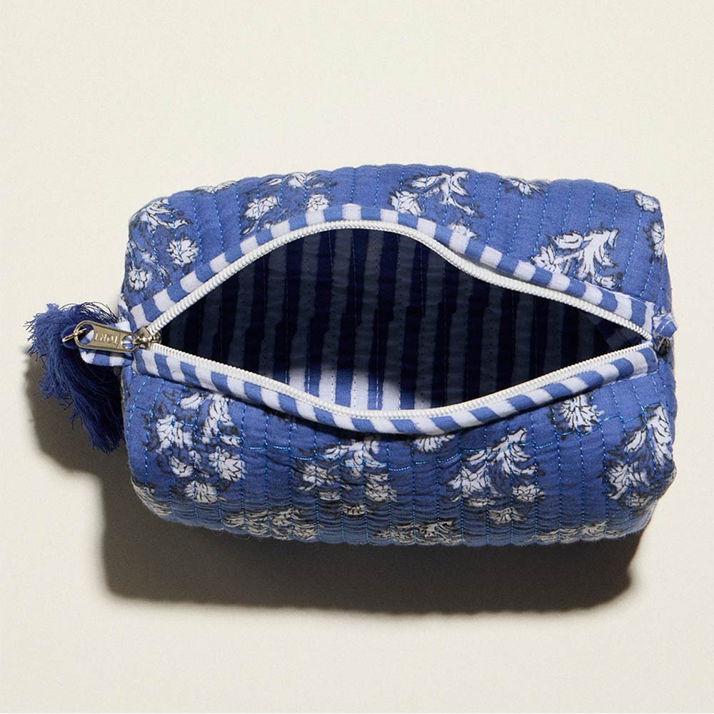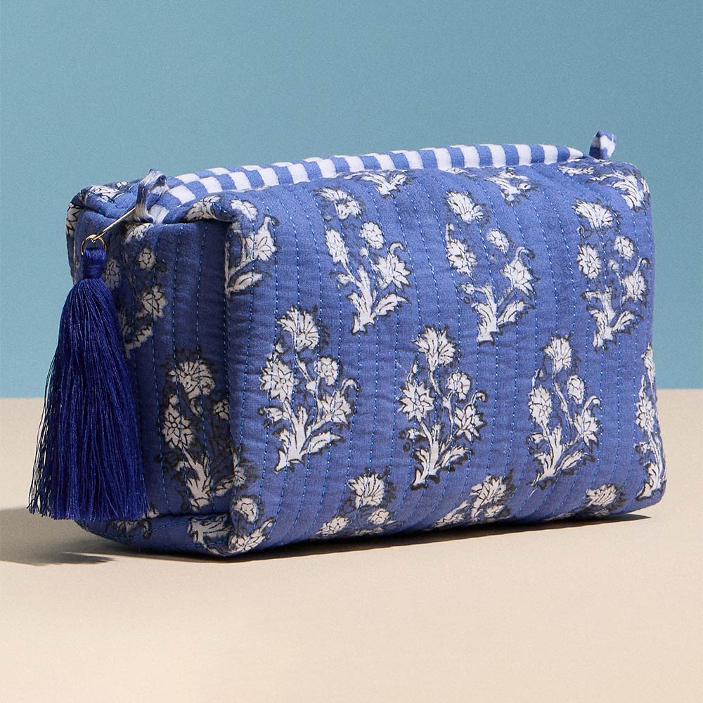 • Quilted floral cosmetic pouch designed to organize makeup, skincare, and daily essentials with ease. Features a softly structured shape, secure zip closure, and decorative tassel accent. Compact yet spacious for travel, handbags, or vanity use, making it a stylish and practical storage solution or gift option.