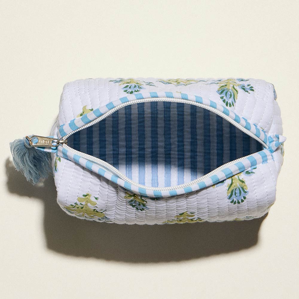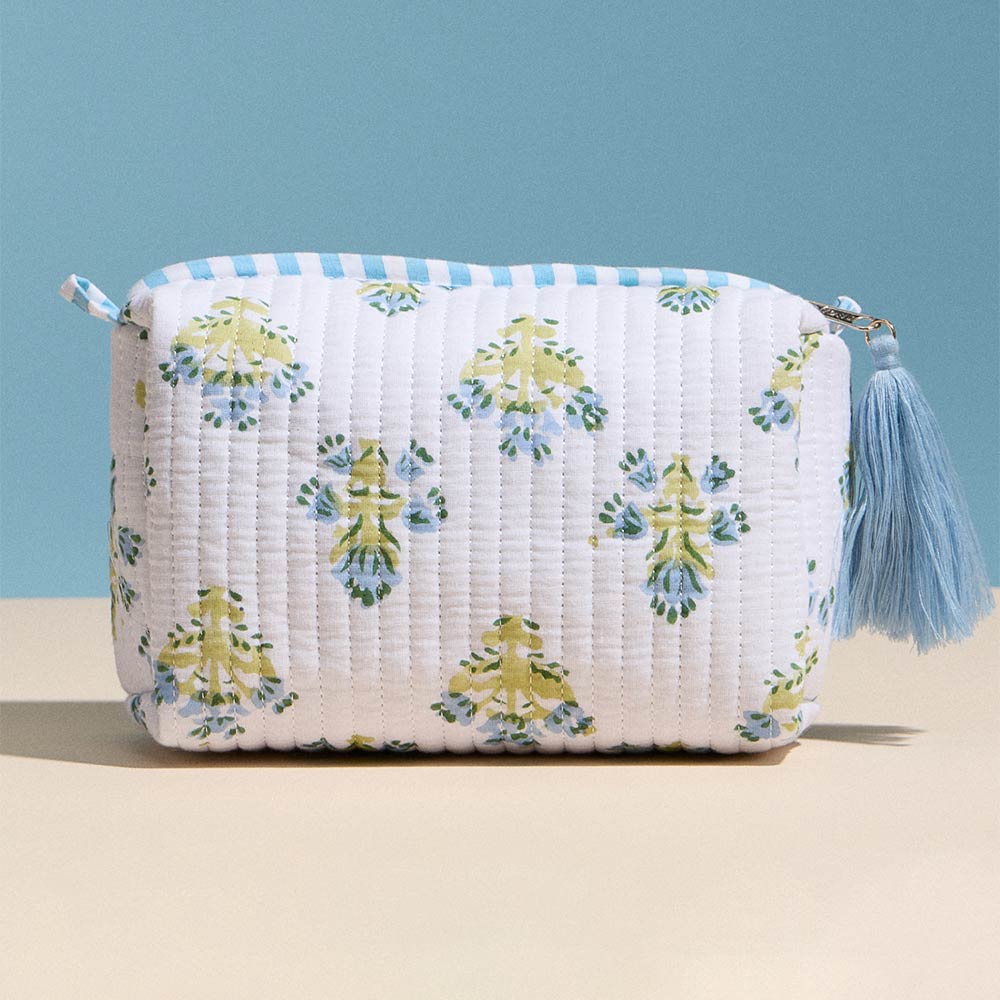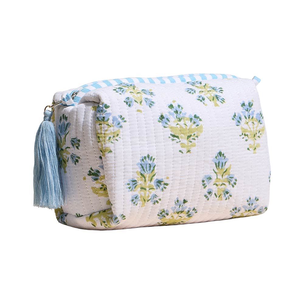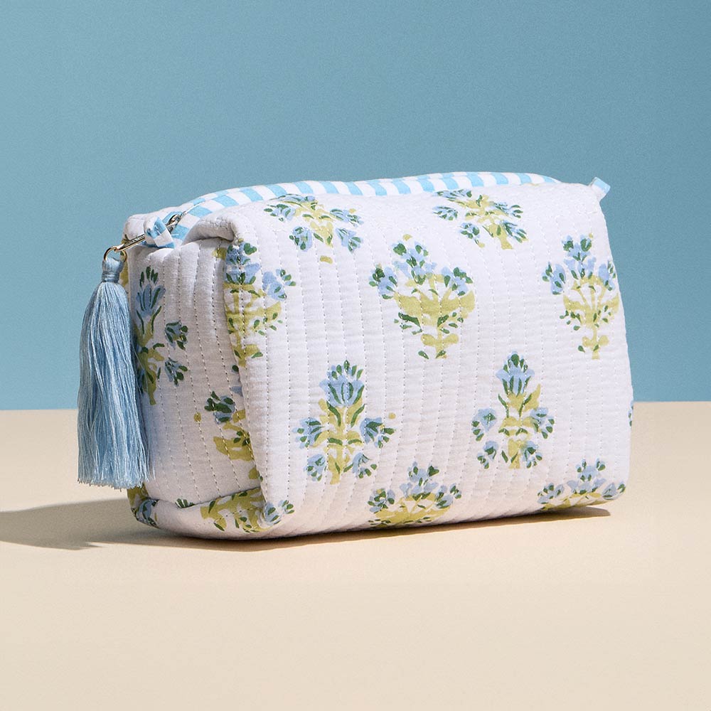 Details • Size : 6.5" X 4" X 3" • Zipper Closure • Quilted floral cosmetic pouch designed to organize makeup, skincare, and daily essentials with ease. Features a softly structured shape, secure zip closure, and decorative tassel accent. Compact yet spacious for travel, handbags, or vanity use, making it a stylish and practical storage solution or gift option.